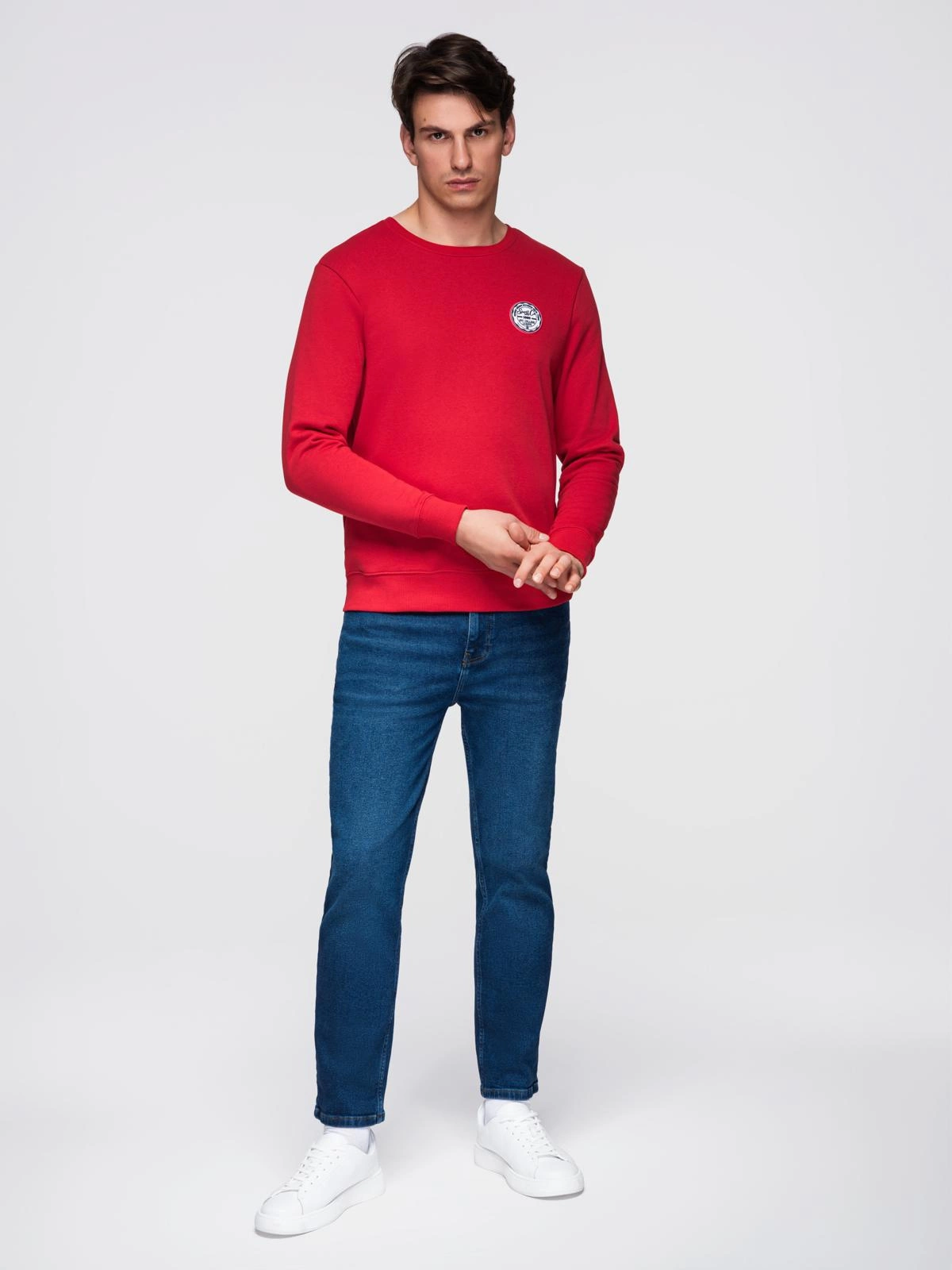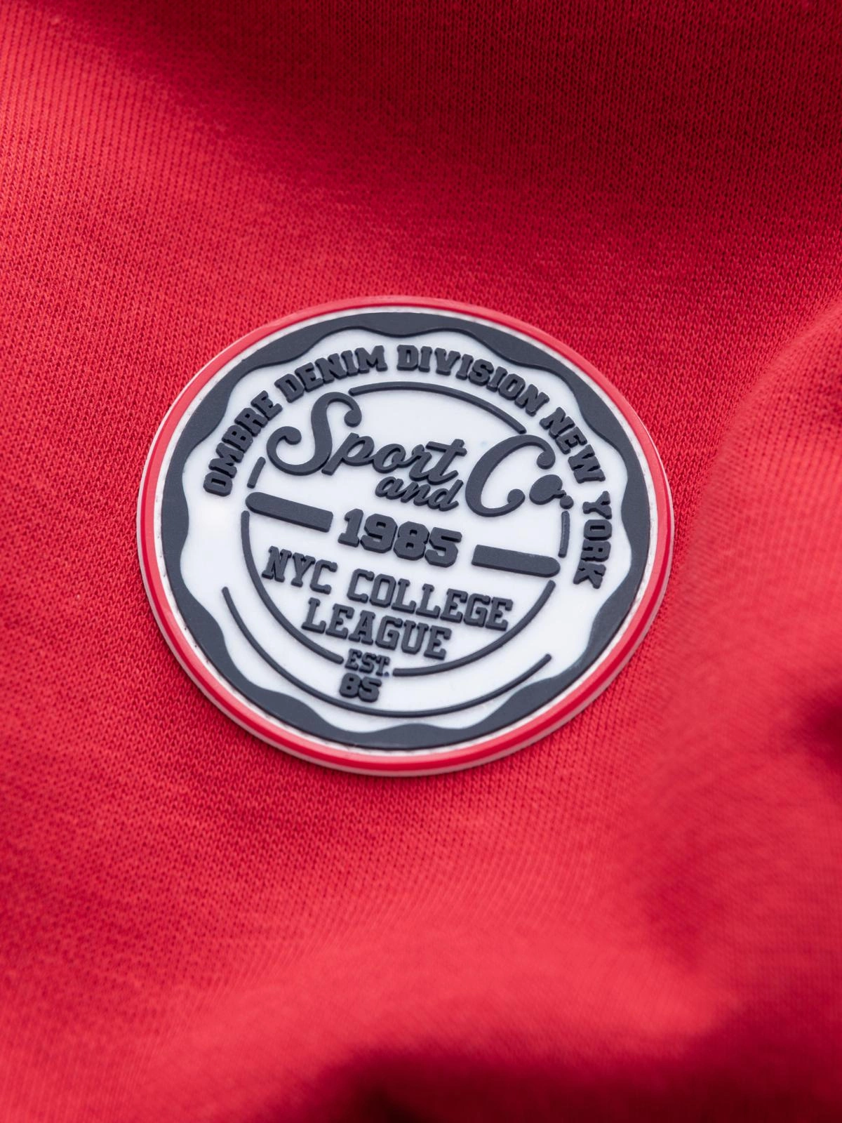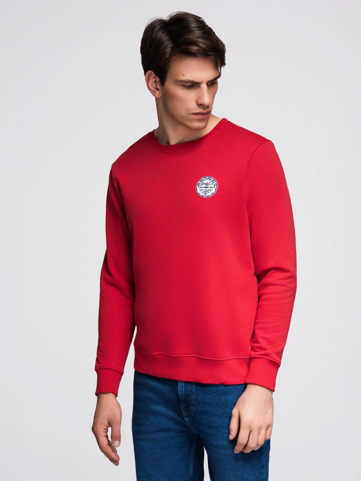 Vyriški nestandartiniai džemperiai su apvaliomis iškirptėmis ir lopais - raudoni V1 B1713