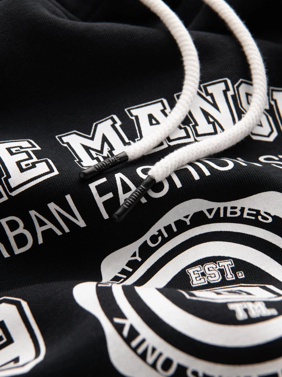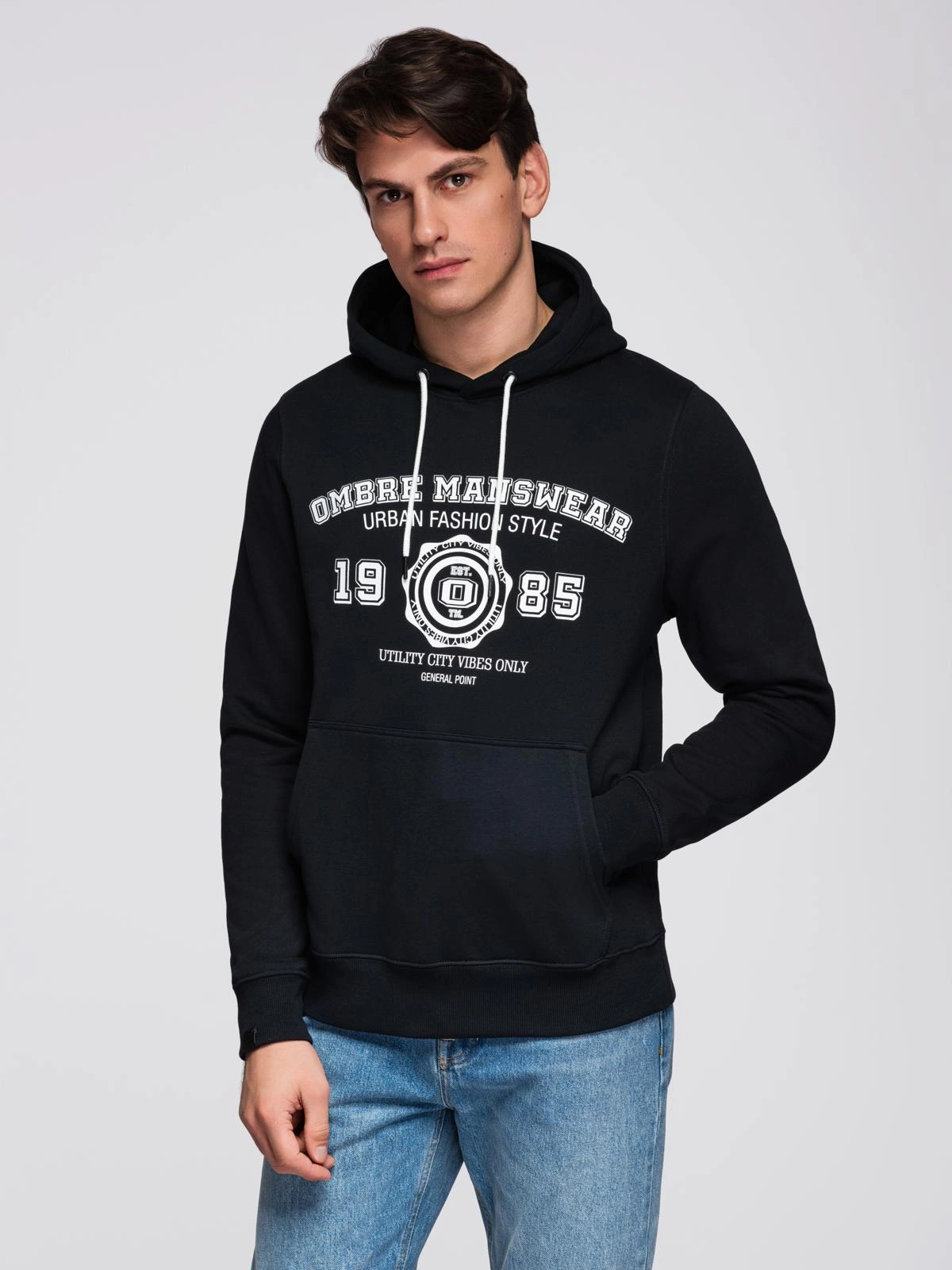 Vyriškas džemperis su gobtuvu ir grafika - juodas V3 B1714