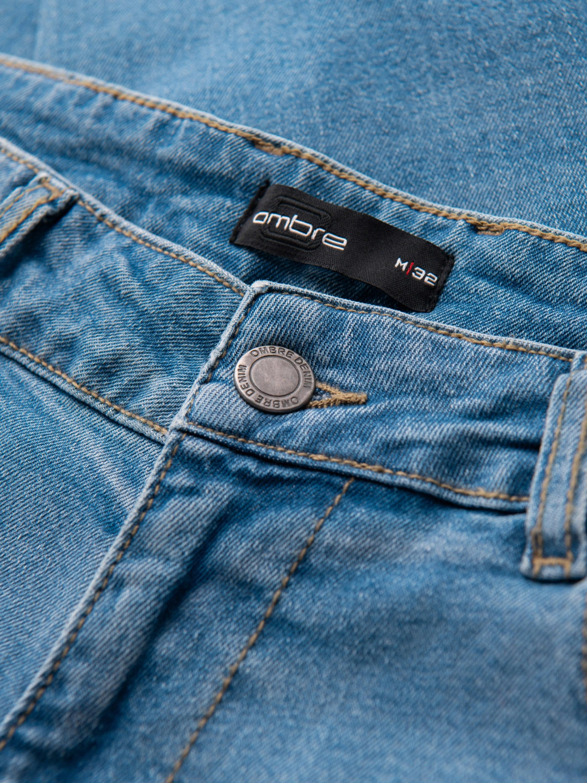 Vyriški siaurėjantys džinsai iš "Ombre Denim" linijos, pasiūti iš džinsinio audinio. Elastingas mišinys skatina judesių laisvę ir išlaiko formą po skalbimo. Apdaila apima skalbimo efektą, nusitrynimą ir vietinį trynimą. Modelis turi dvi priekines ir dvi galines kišenes su lopais, medvilniniai kišenių maišeliai pagerina patogumą. Metaliniai aksesuarai ir diskretiškas odos imitacijos lopas papildo išvaizdą.