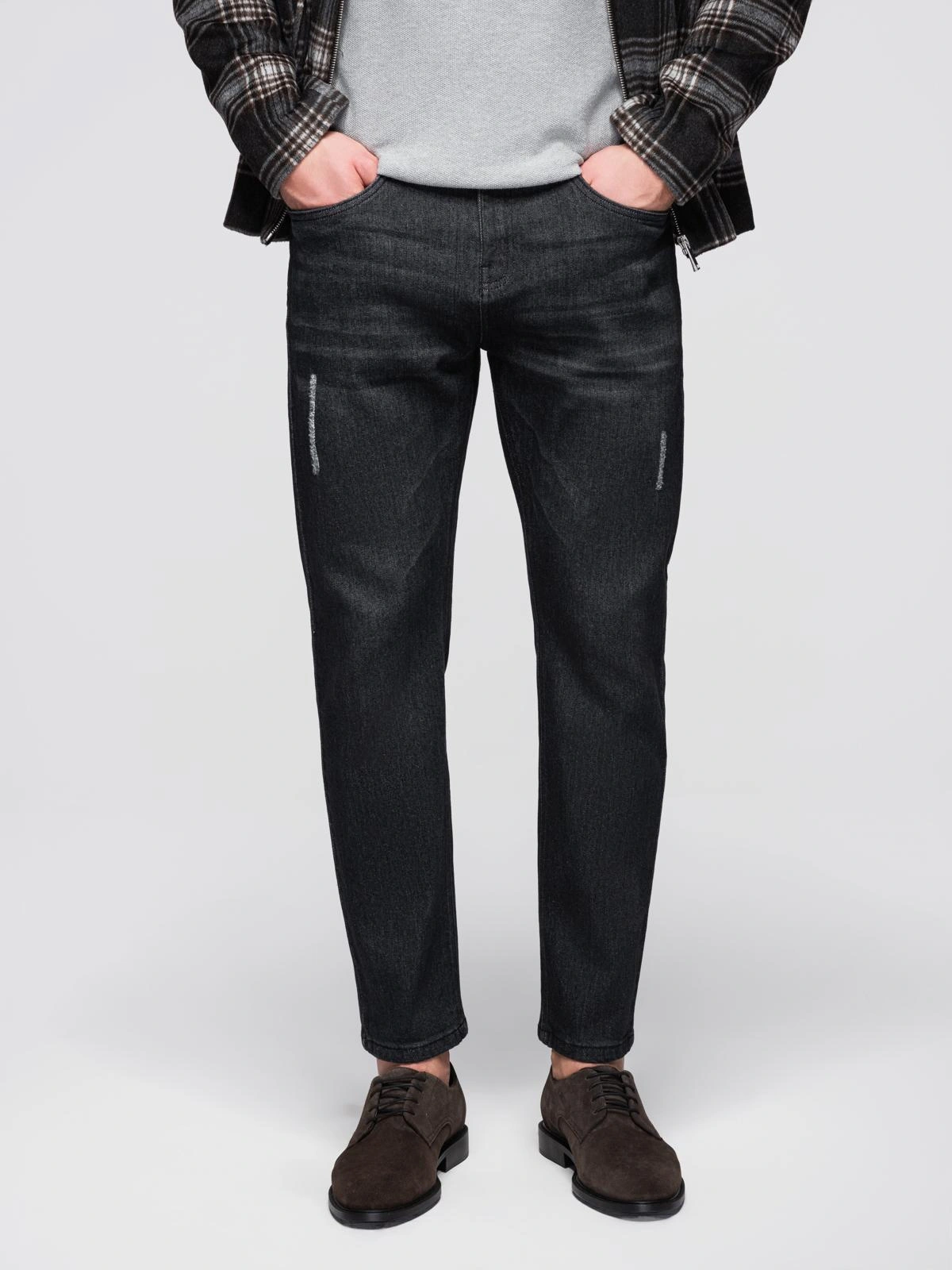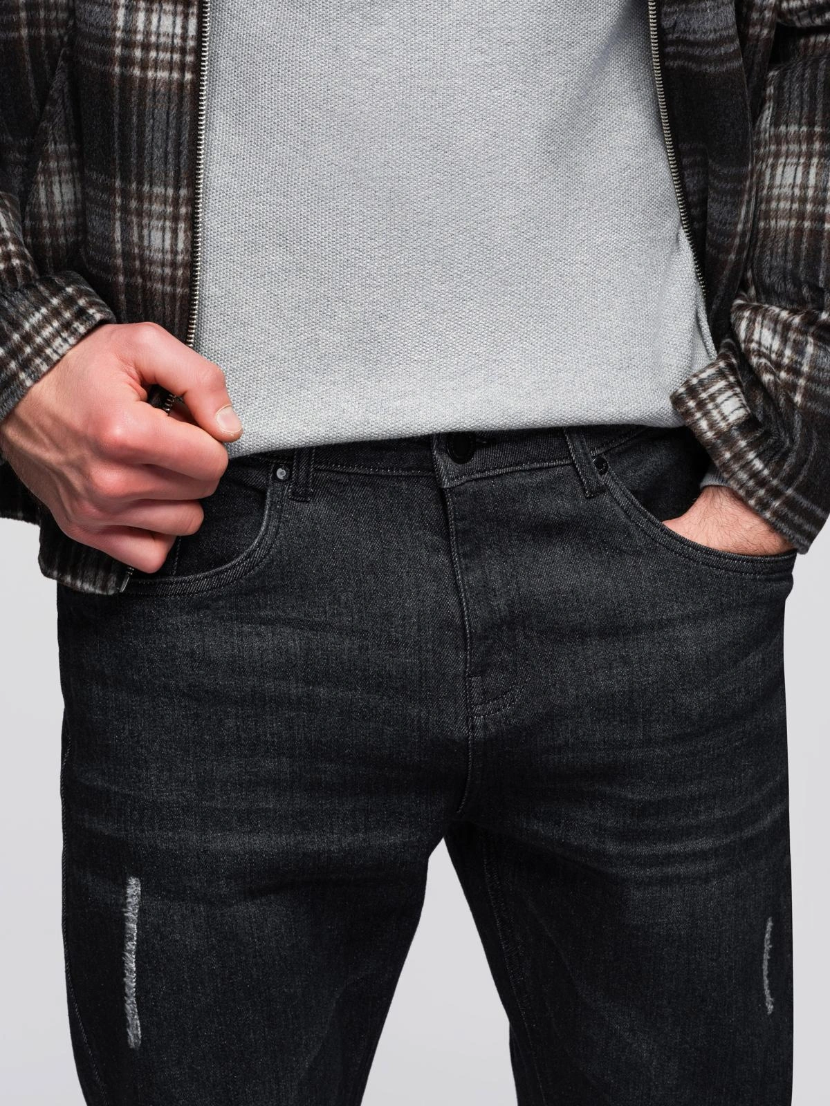 Vyriškos džinsinės kelnės REGULAR FIT su trynimusi - juoda V2 OM-PADP-0241