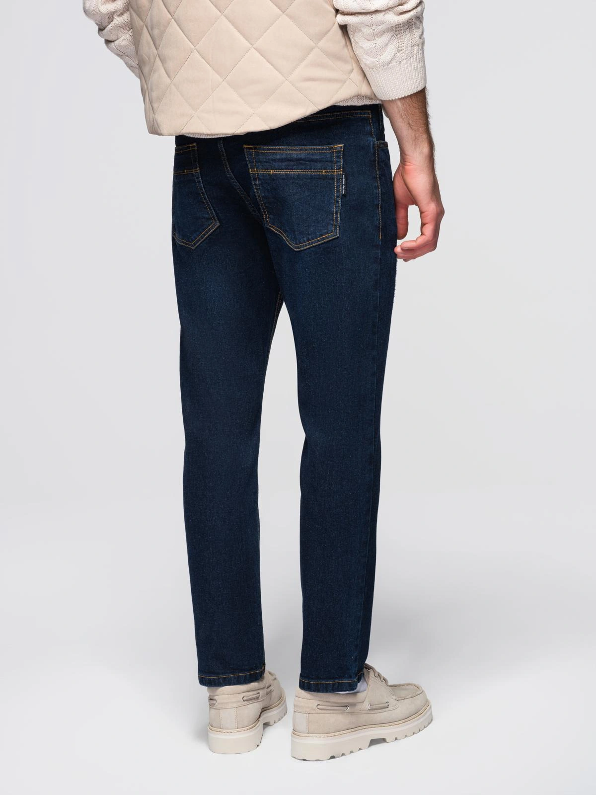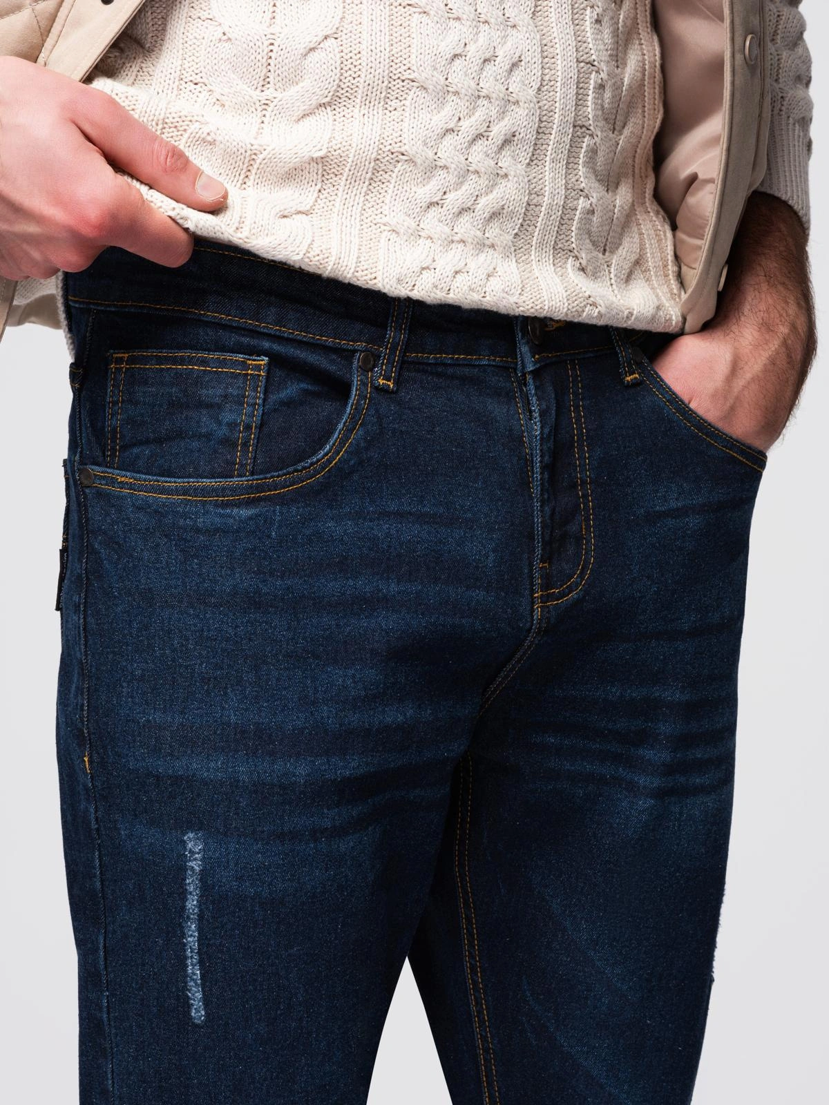 Vyriškos džinsinės kelnės REGULAR FIT su trynimusi - tamsiai mėlynos spalvos V4 OM-PADP-0241