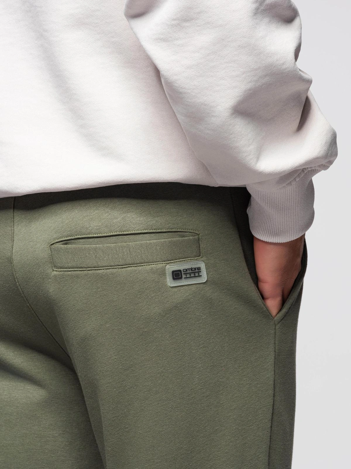 Vyriškos struktūriškai megztos sportinės kelnės - šviesiai smėlio spalvos V1 OM-PASK-0211