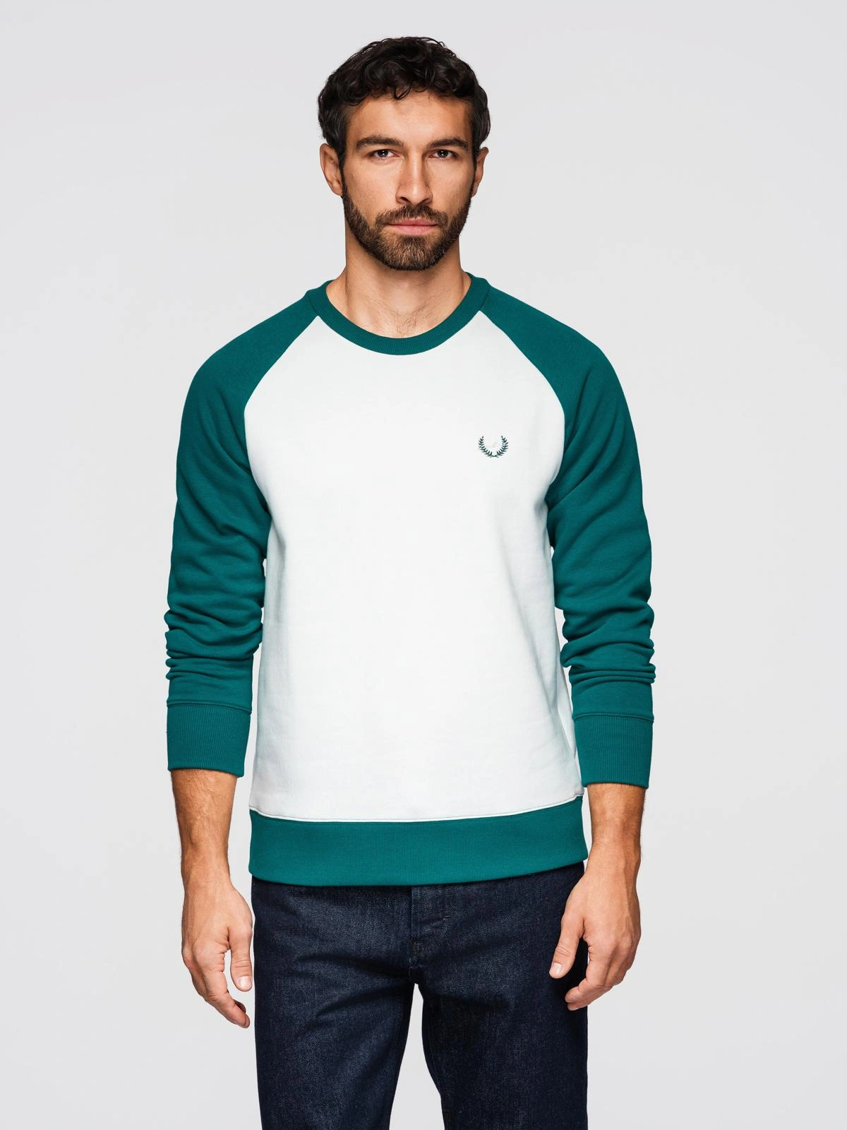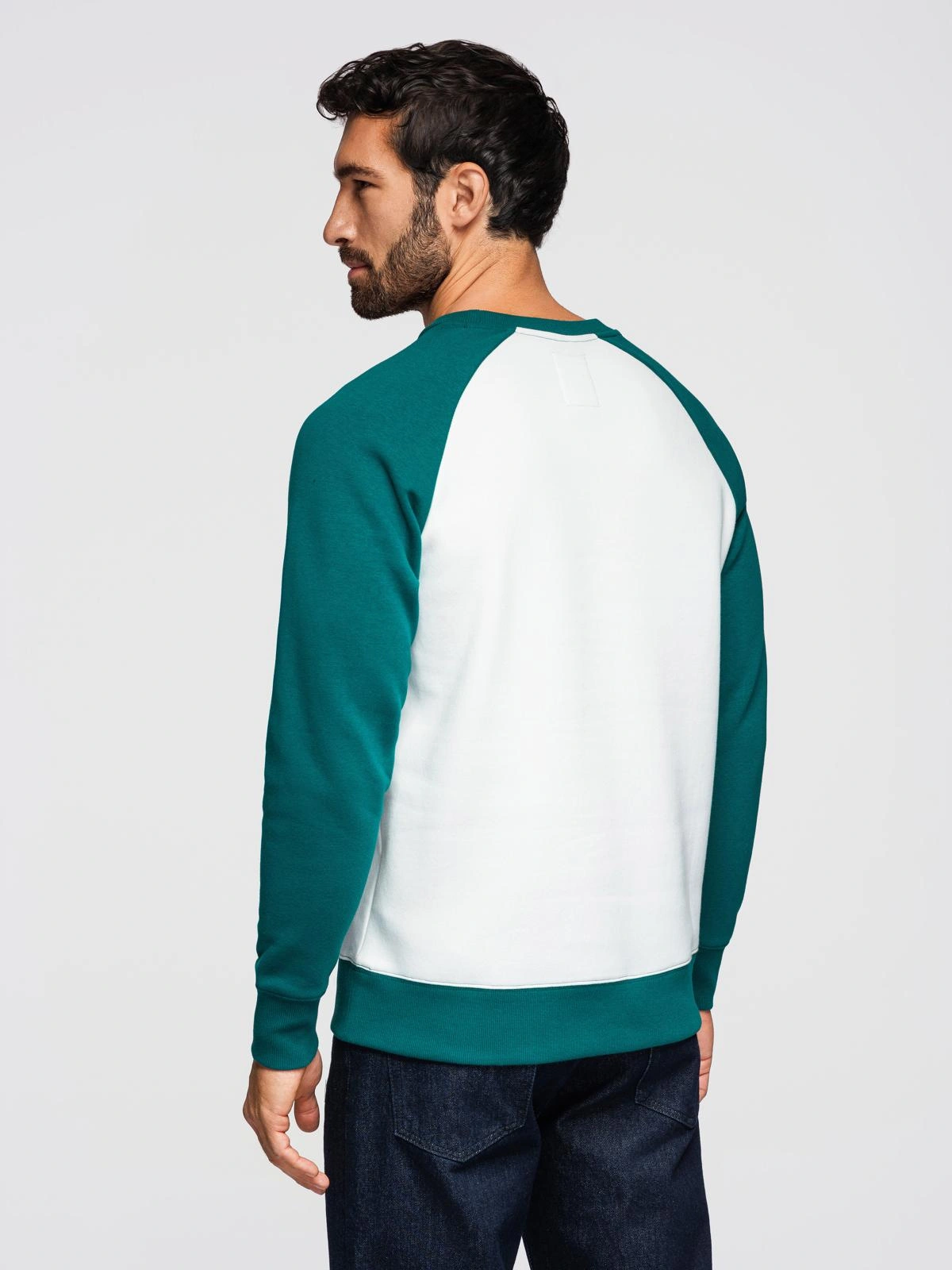 Vyriškas kontrastinis džemperis su reglano rankovėmis - kreminės ir tamsiai žalios spalvos V1 OM-SSNZ-0239