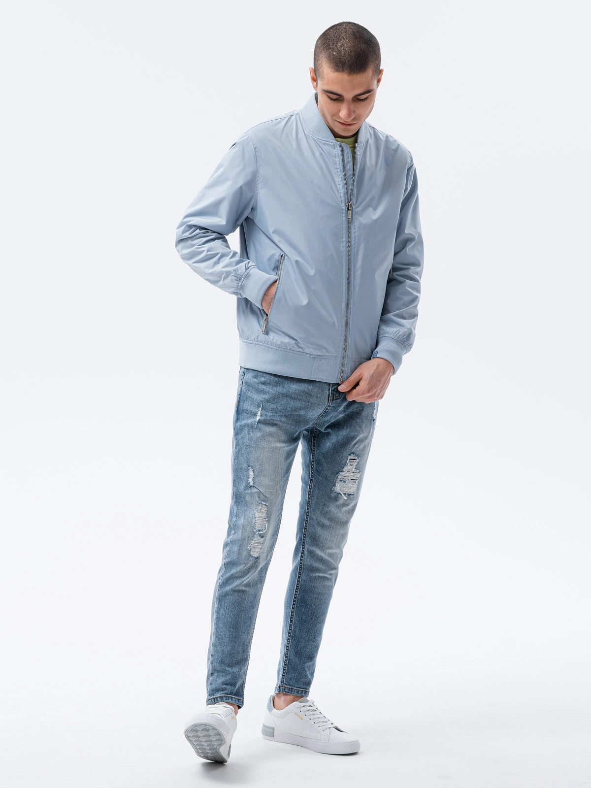 Vyriška pavasarinė bomber tipo striukė - šviesiai mėlyna C439