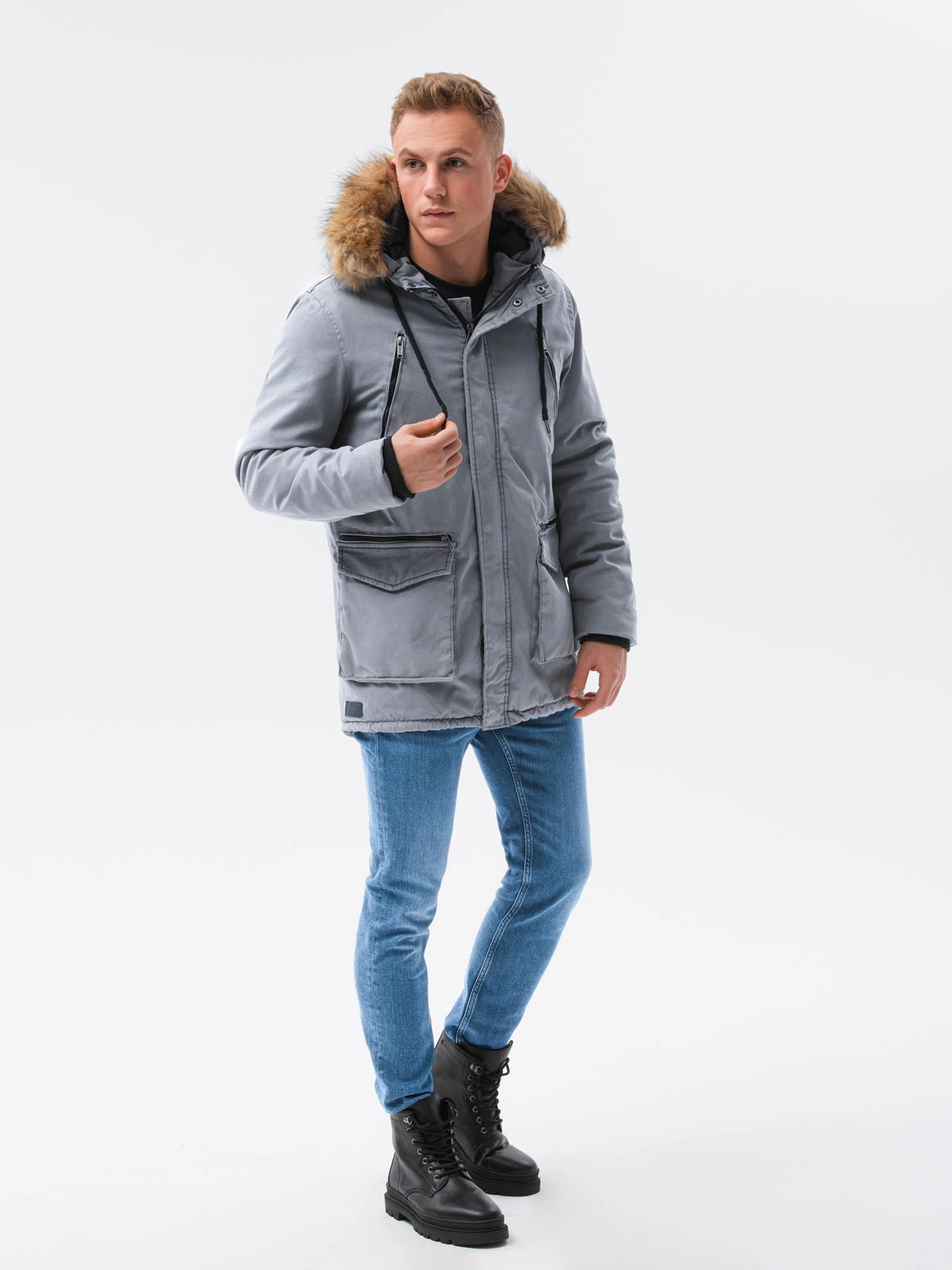 Vyriška žieminė dygsniuota striukė - pilka C512