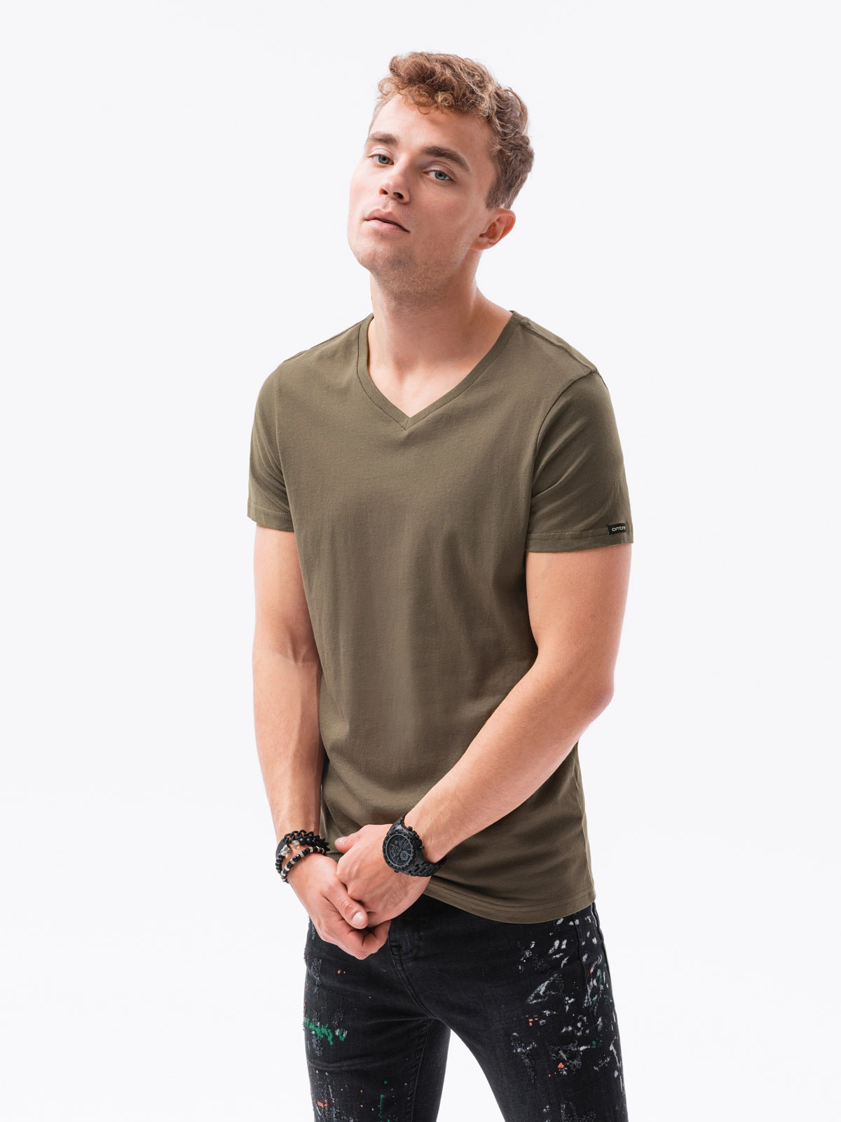 Classic BASIC vyriški marškinėliai su iškirpte - tamsiai alyvuogių žalia V6 S1369