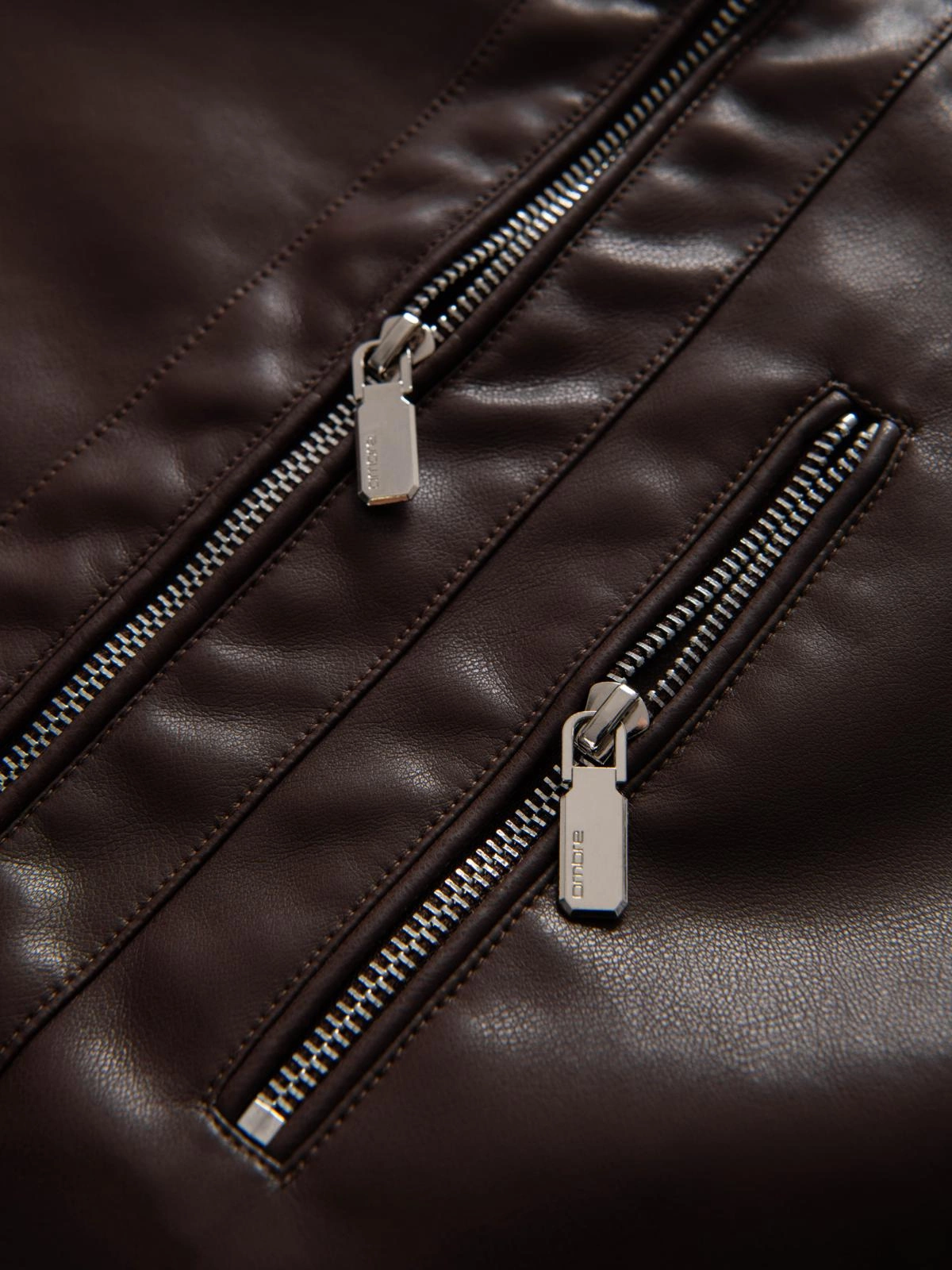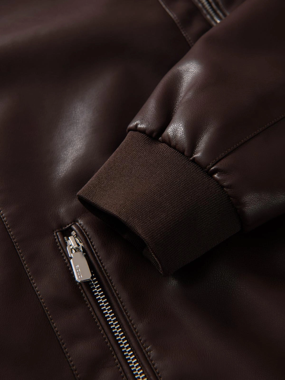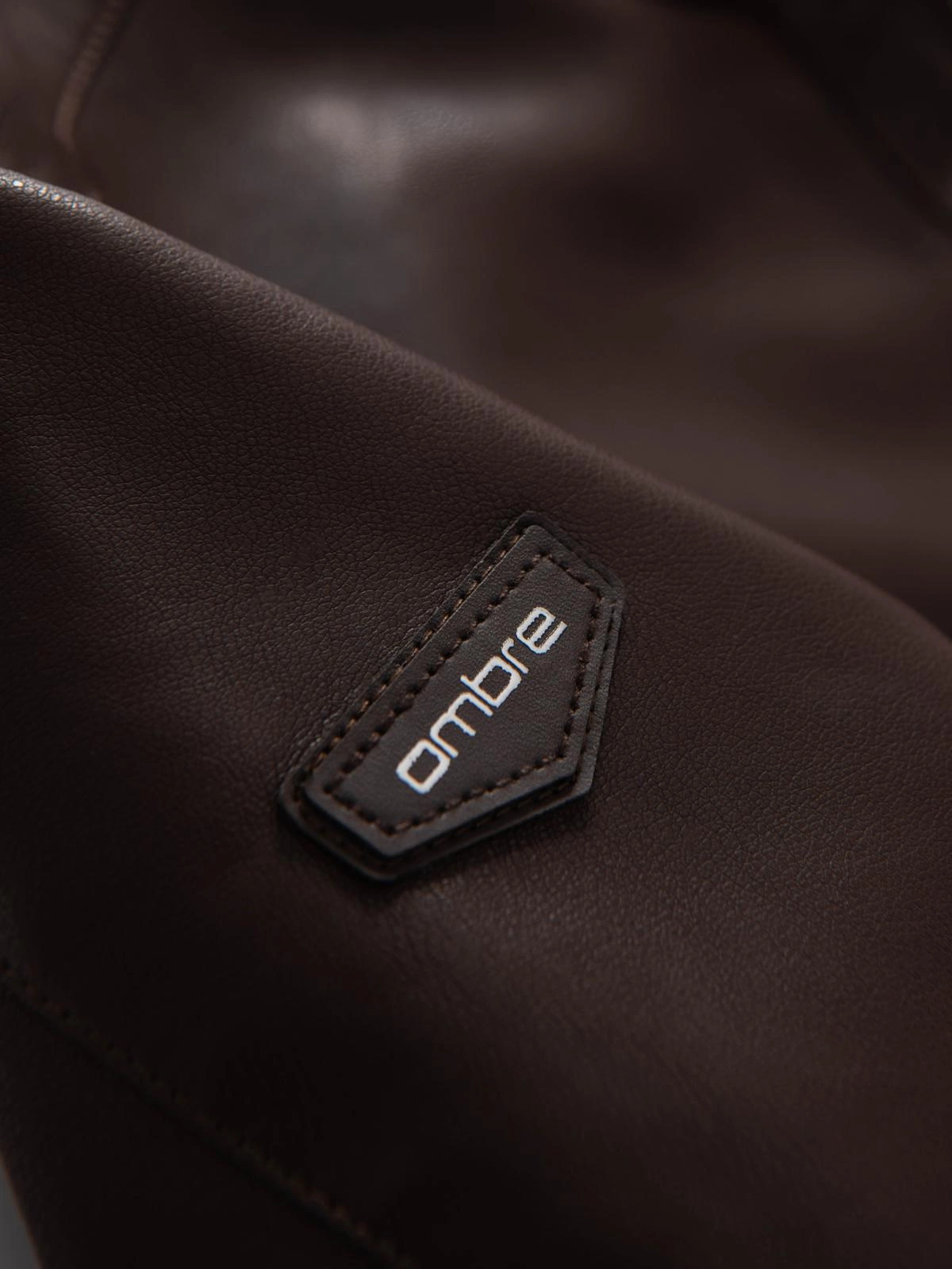 Jachetă bărbătească din imitație de piele cu tivul cu nervuri - maro închis V1 OM-JAFL-0109