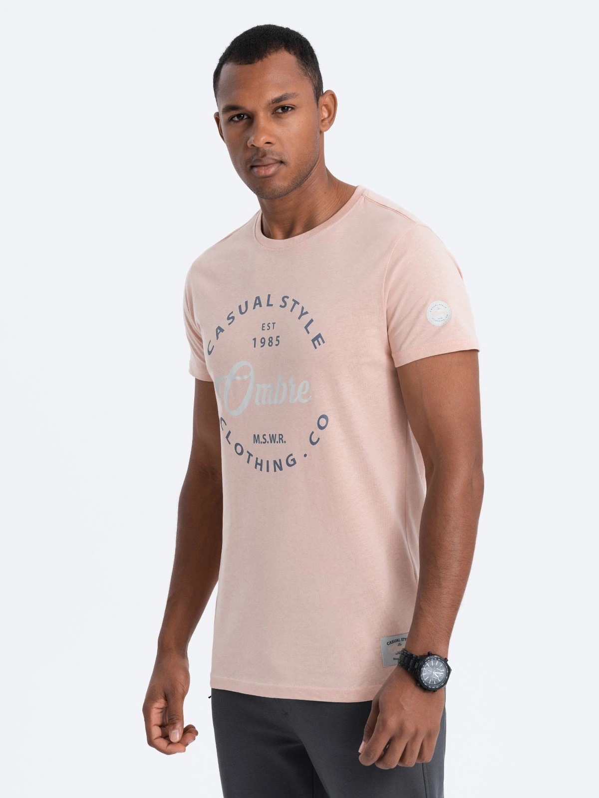 Tricou bărbătesc din bumbac imprimat - roz deschis V3 S1752