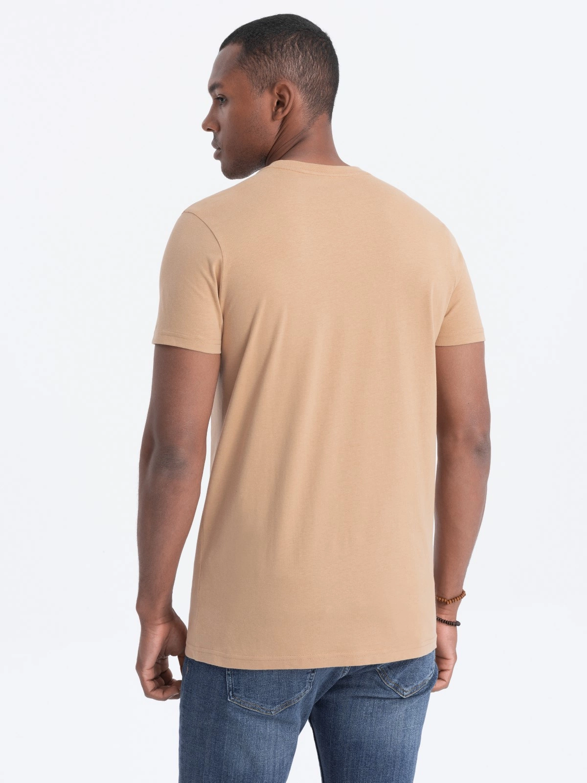 Tricou bărbătesc din bumbac cu imprimeu de buzunar - maro deschis V6 S1742