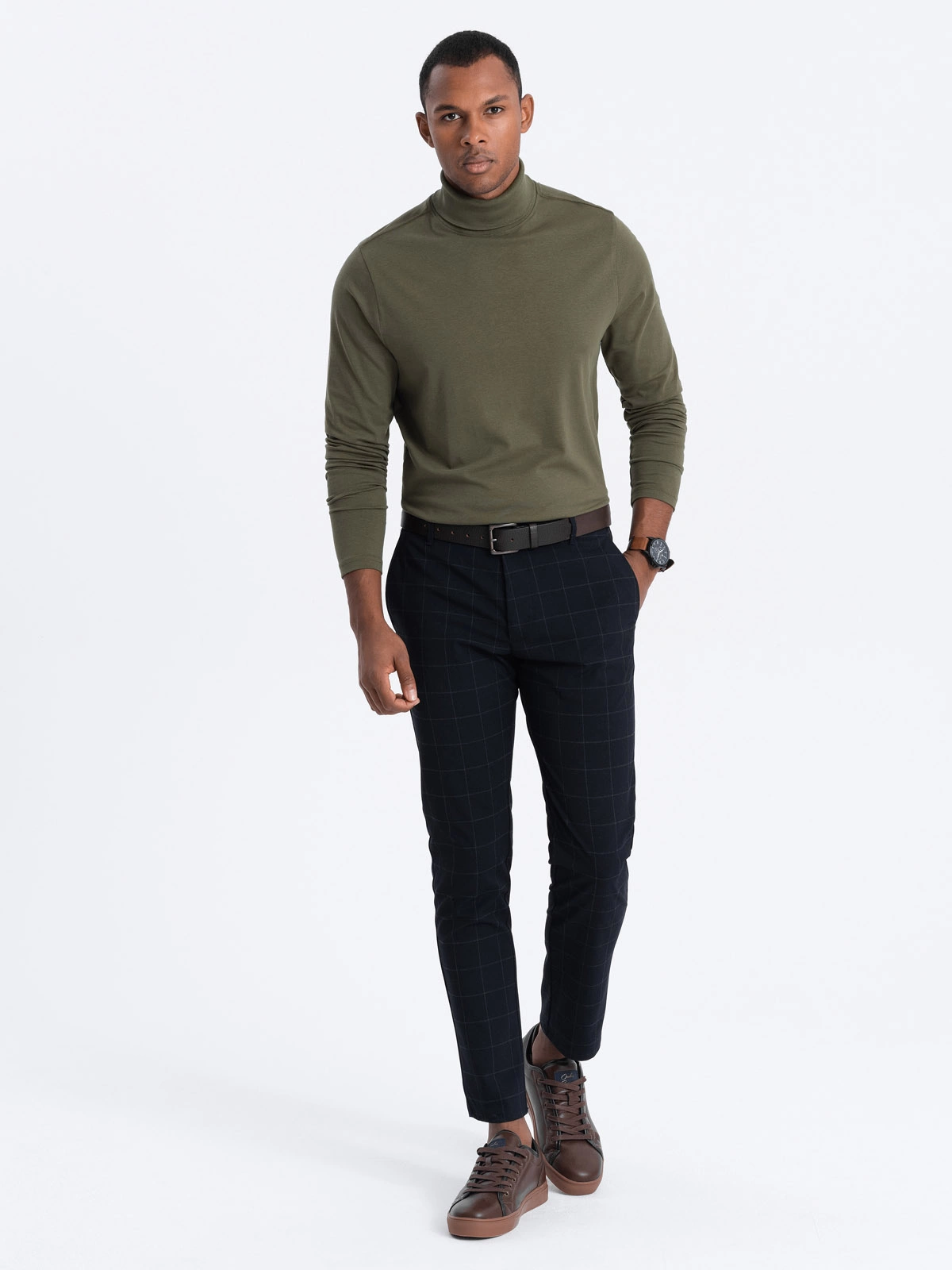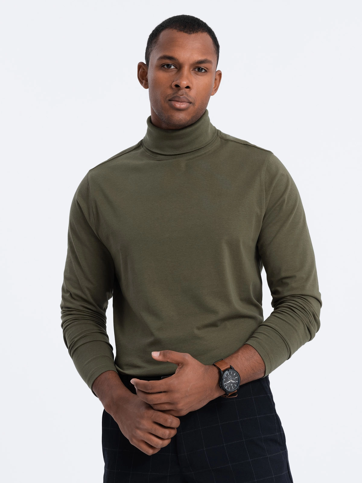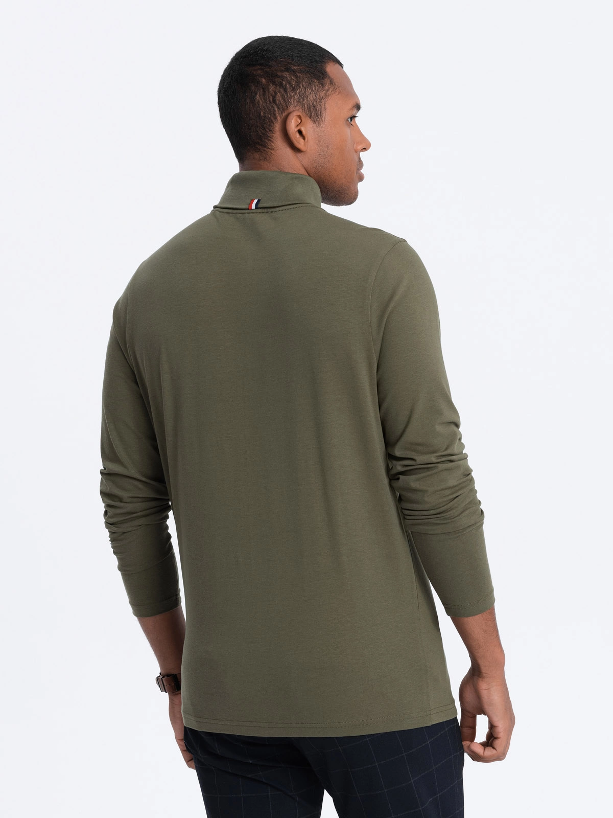 Cămașă lungă pentru bărbați cu guler înalt - verde-oliv închis V4 OM-LSCL-0112