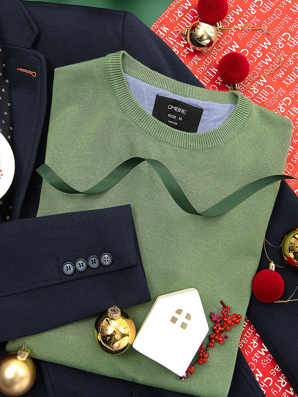 Pulover clasic pentru bărbați cu decolteu rotund - verde V13 OM-SWBS-0106
