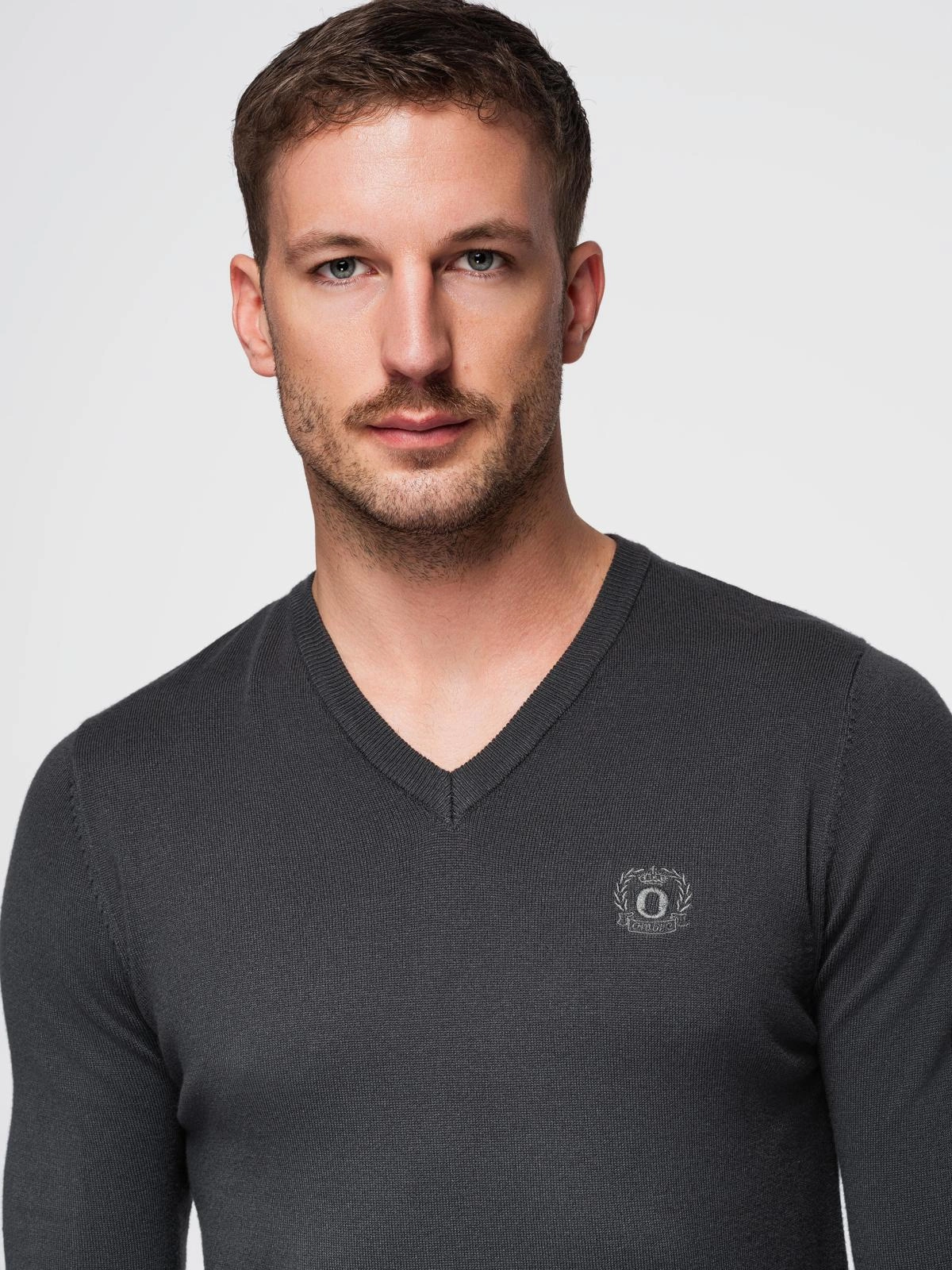 Pulover elegant pentru bărbați, cu decolteu tip echipaj - grafit V17 OM-SWBS-0107