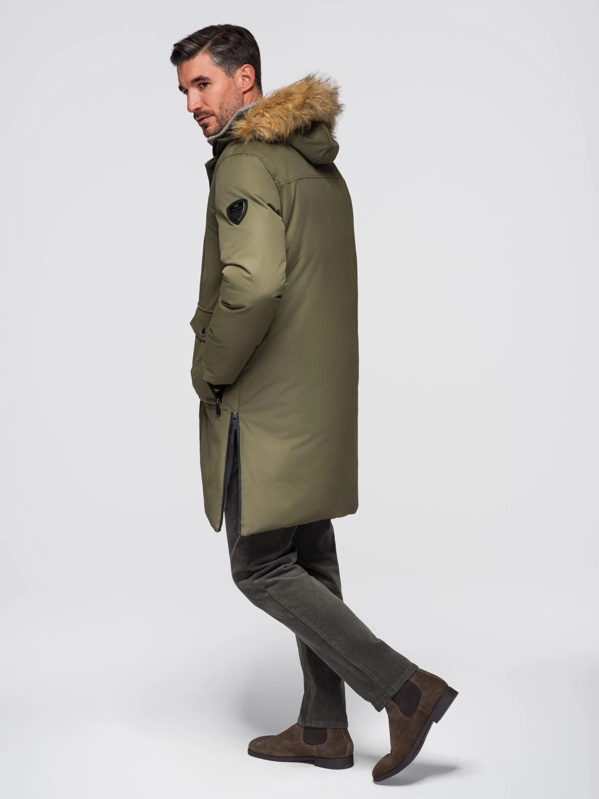 Jachetă de iarnă pentru bărbați Alaskan cu blană detașabilă de la glugă - verde-oliv închis V3 OM-JALJ-0148