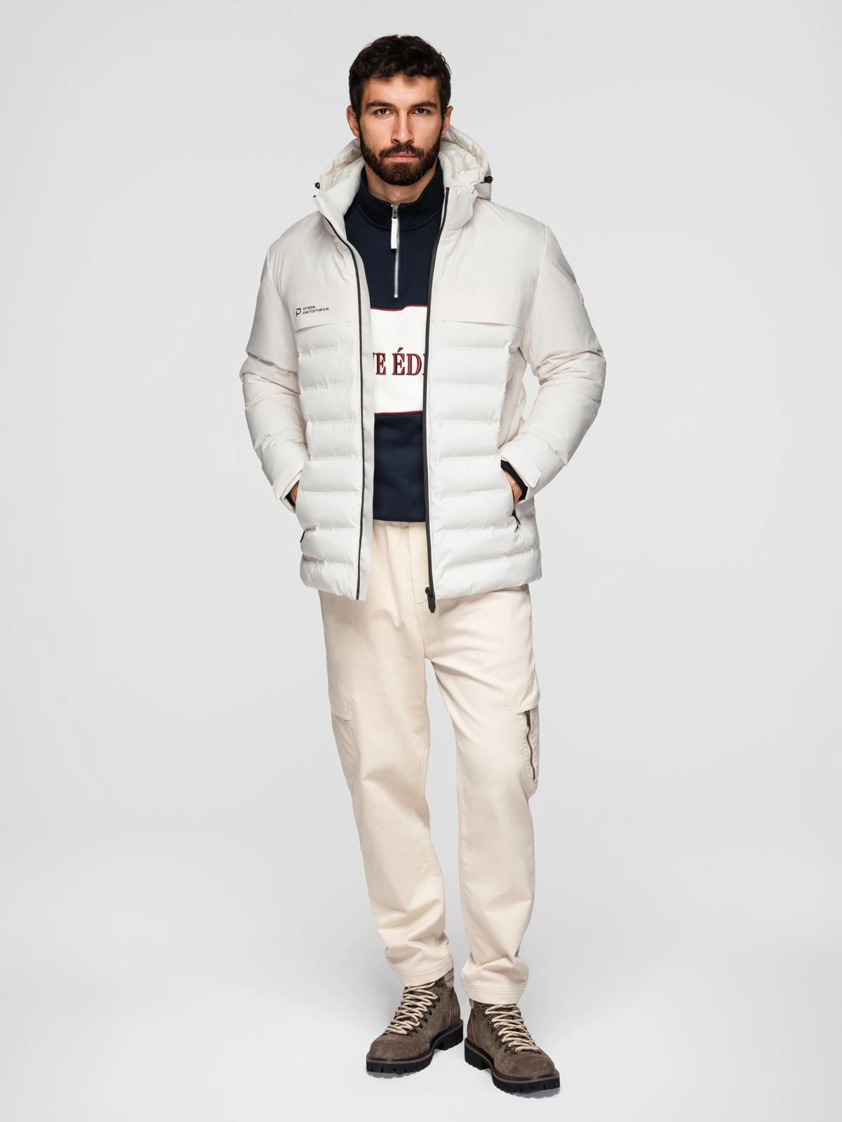 Jachetă de iarnă pentru bărbați cu glugă detașabilă - crem V2 OM-JAHP-0150