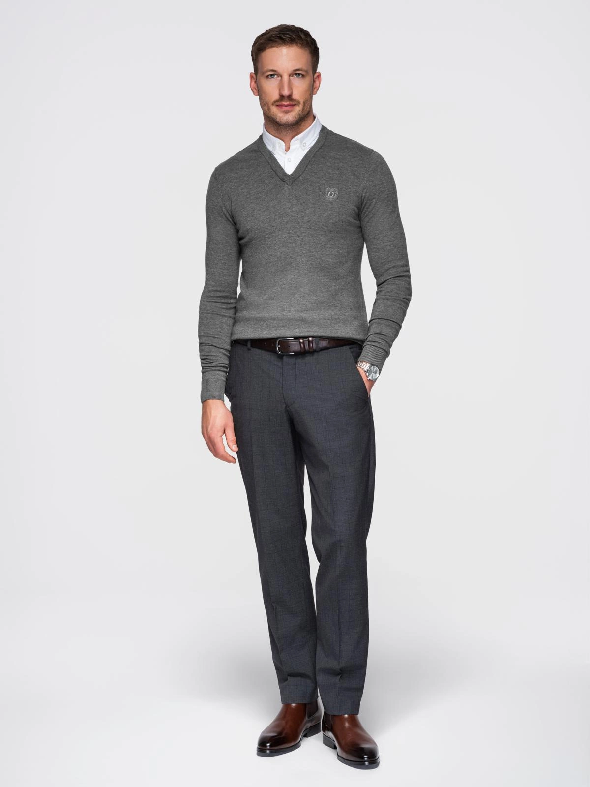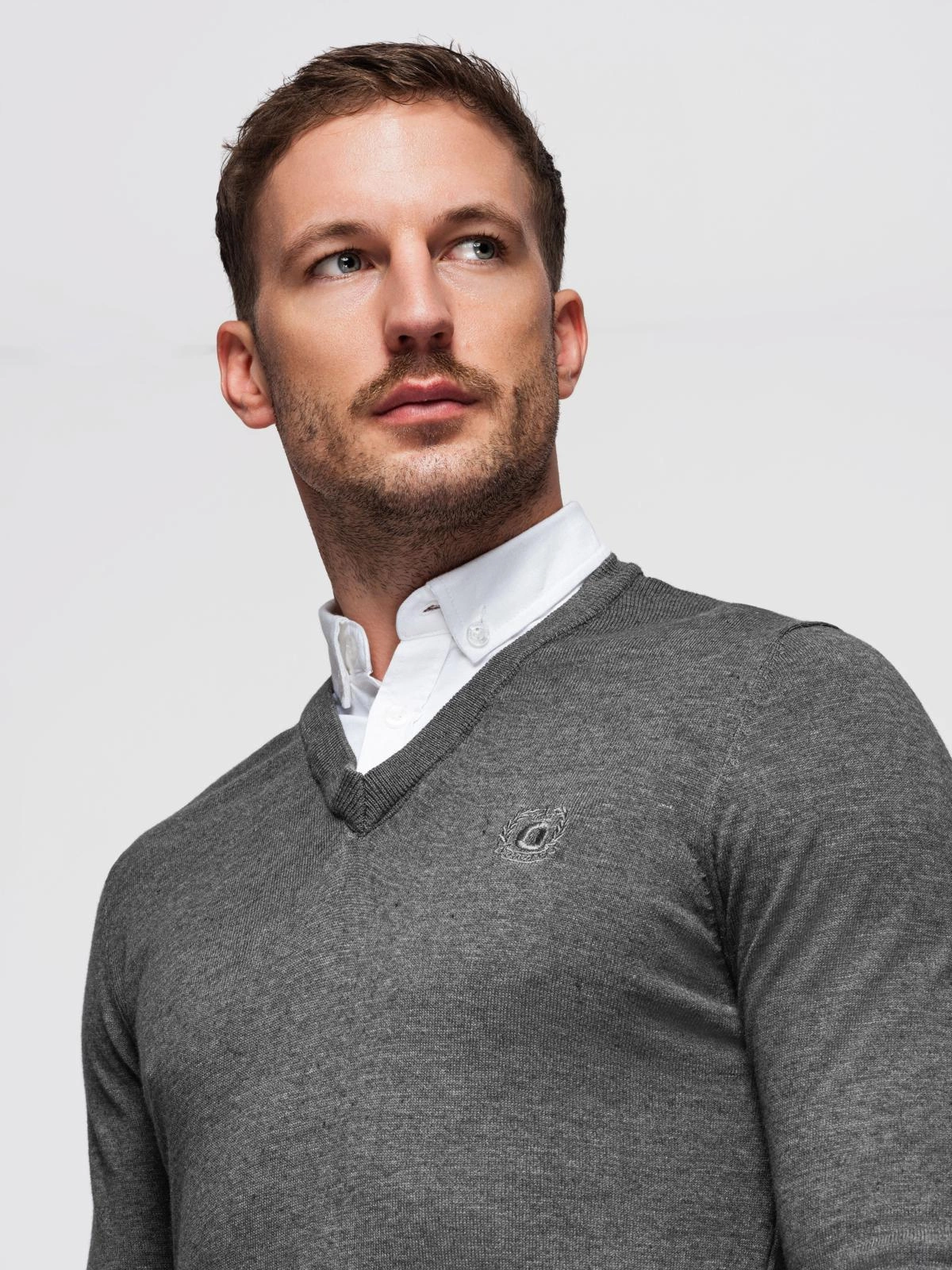 Pulover bărbătesc cu guler în V și guler cămașă - grafit V3 OM-SWSWW-0102