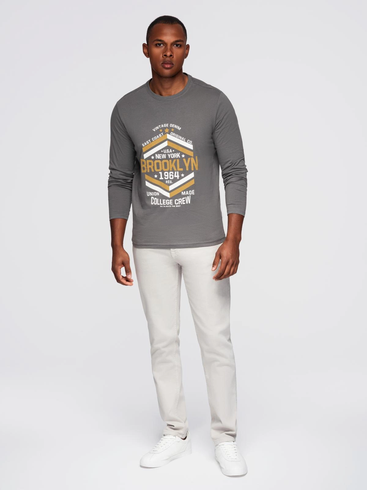 Mâneci lungi cu mânecă lungă cu imprimeu în stil colegial pentru bărbați - gri V1 OM-LSPT-0117