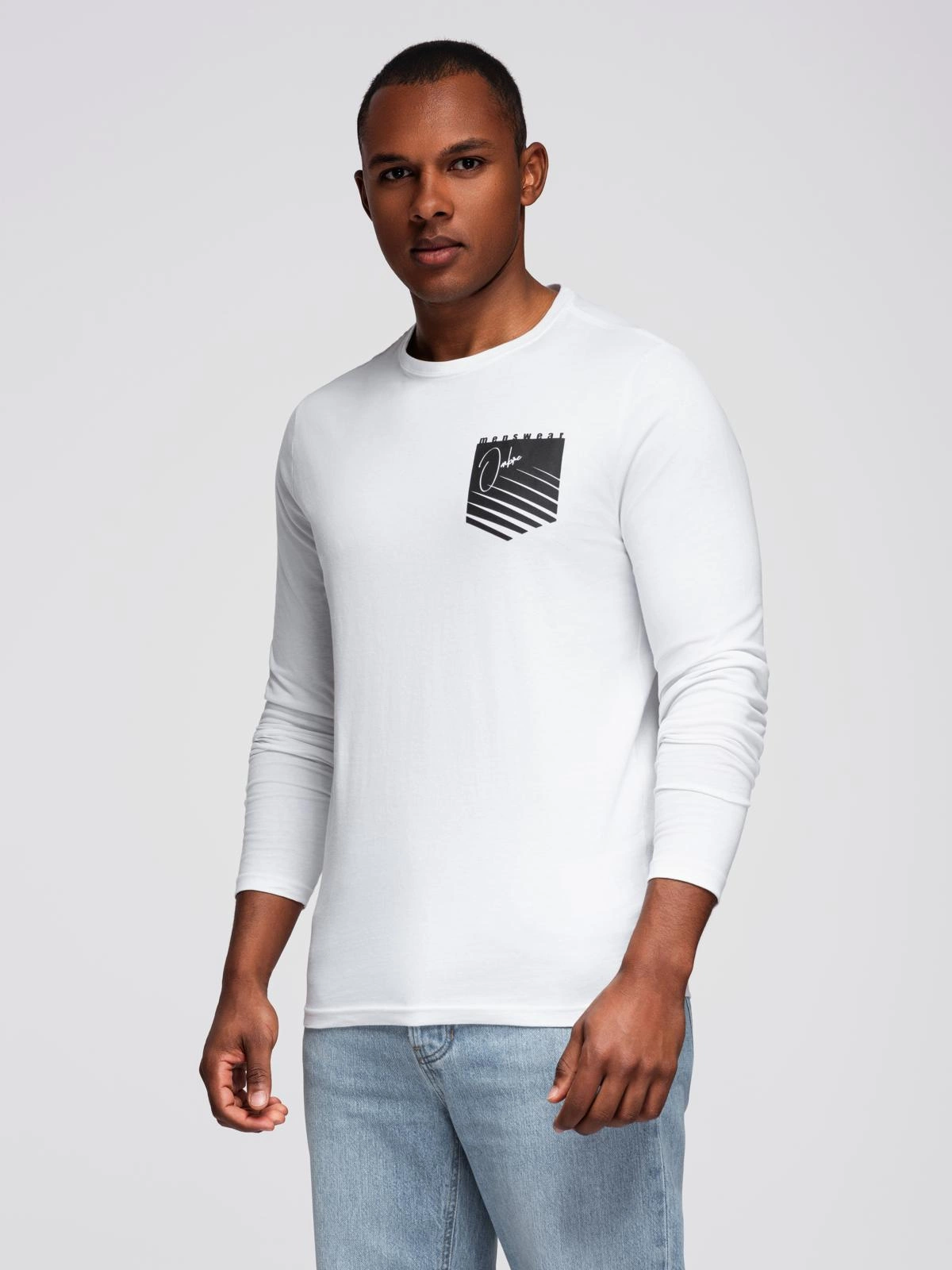 Mâneci lungi pentru bărbați cu mânecă lungă cu imprimeu de buzunar - alb V1 OM-LSPT-0118