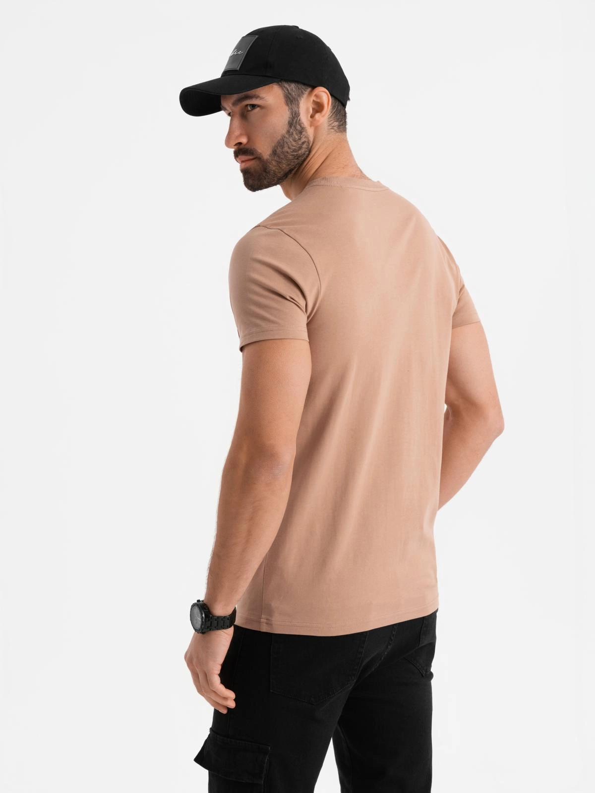 Tricou bărbătesc din bumbac cu buzunar - maro deschis V7 OM-TSPT-0154