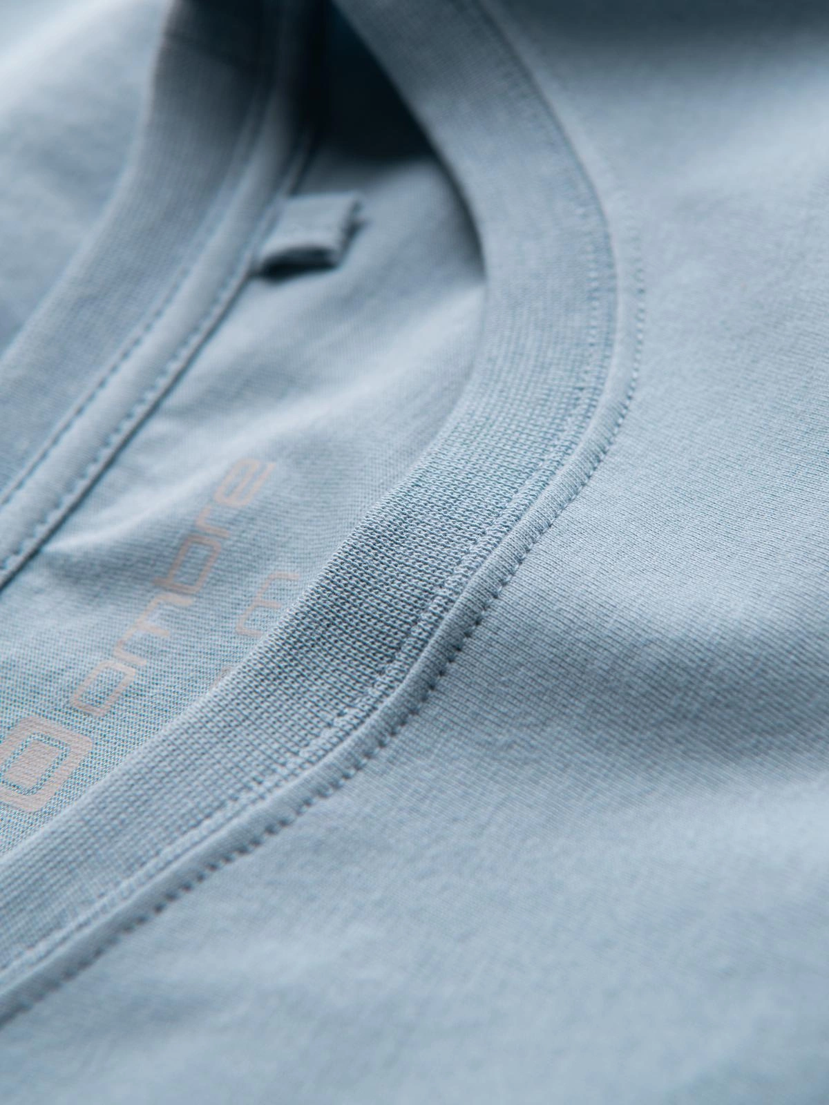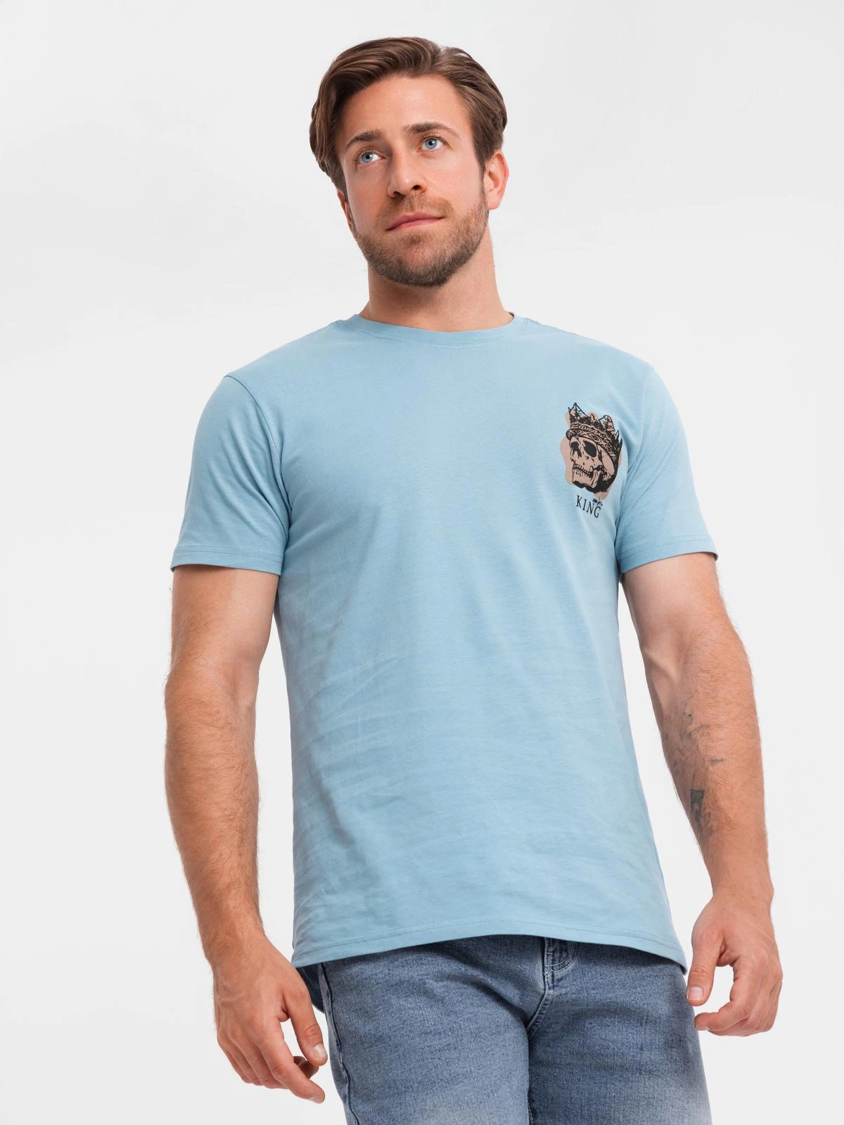 Tricou bărbătesc din bumbac cu imprimare pe piept - albastru deschis V2 OM-TSPT-0167