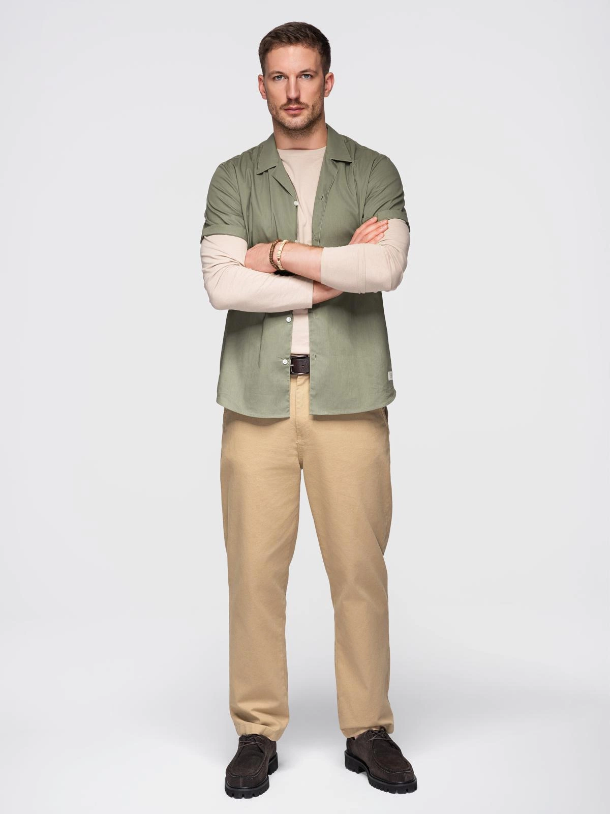 Cămașă bărbătească cu mânecă scurtă și guler cubanez - kaki V4 OM-SHSS-0168