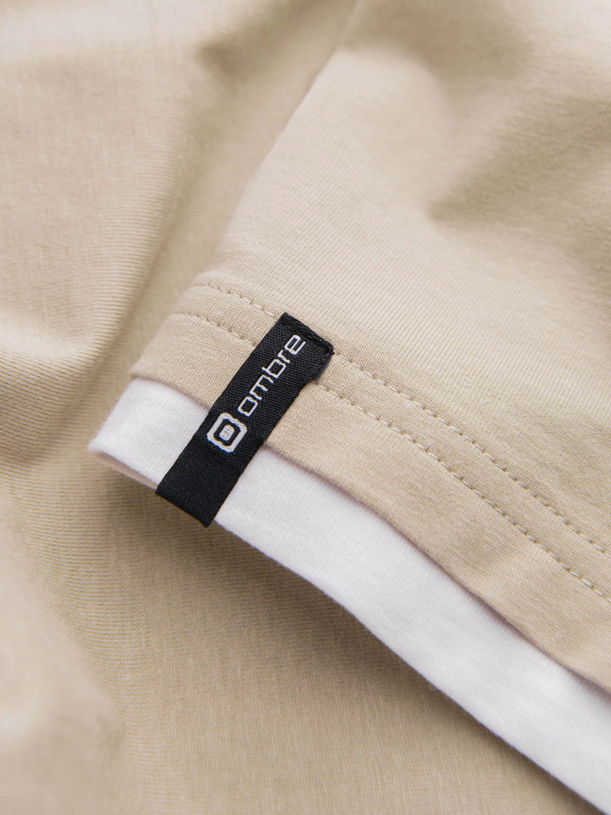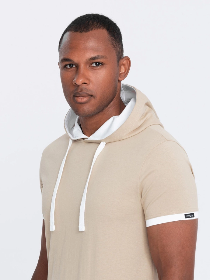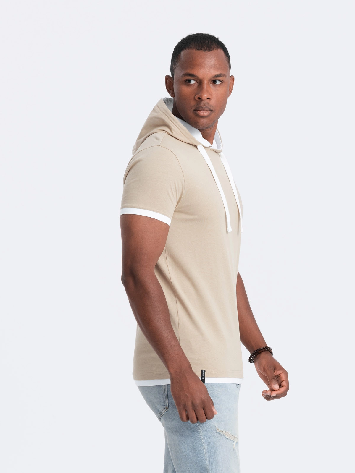 Tricou bărbătesc casual din bumbac cu glugă - bej V5 OM-TSCT-22SS-001