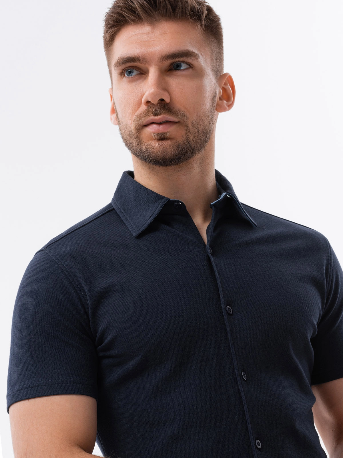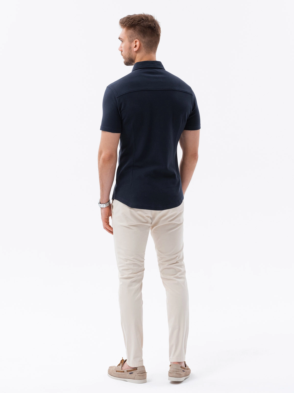 Cămașă bărbătească cu mânecă scurtă, cu mânecă scurtă, cu guler - albastru marin V2 OM-SHSS-0100
