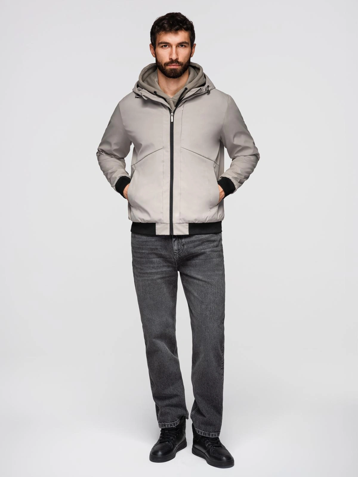 Jachetă ușoară pentru bărbați cu căptușeală din plasă și glugă - gri V6 OM-JANP-0149