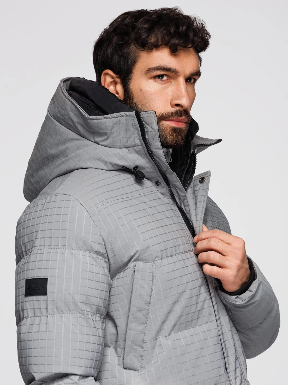 Jachetă parka lungă pentru bărbați - gri V2 OM-JALJ-0201