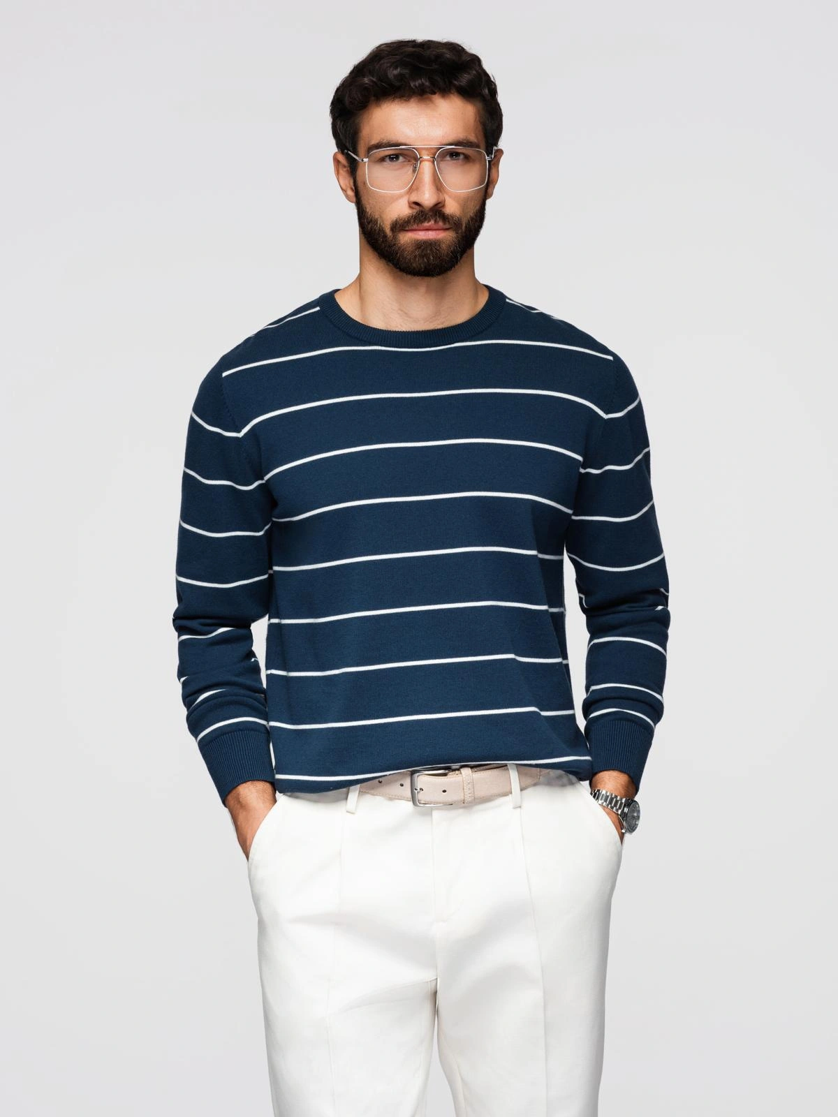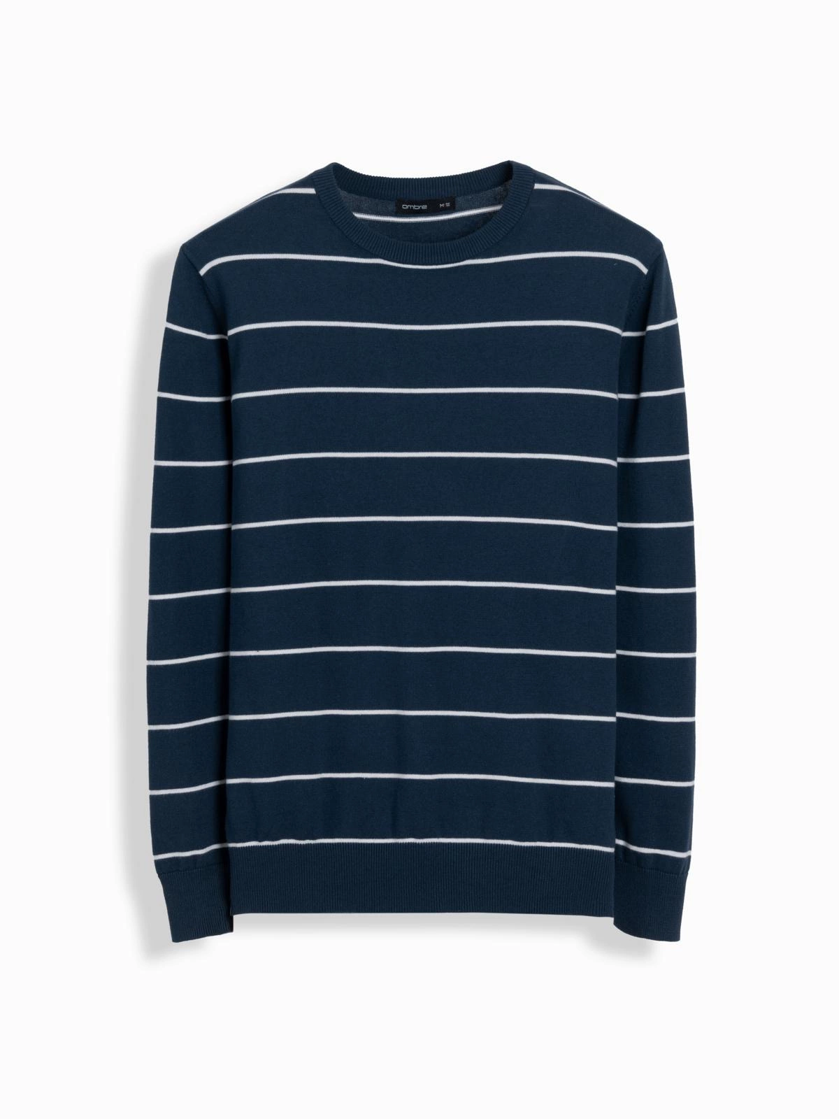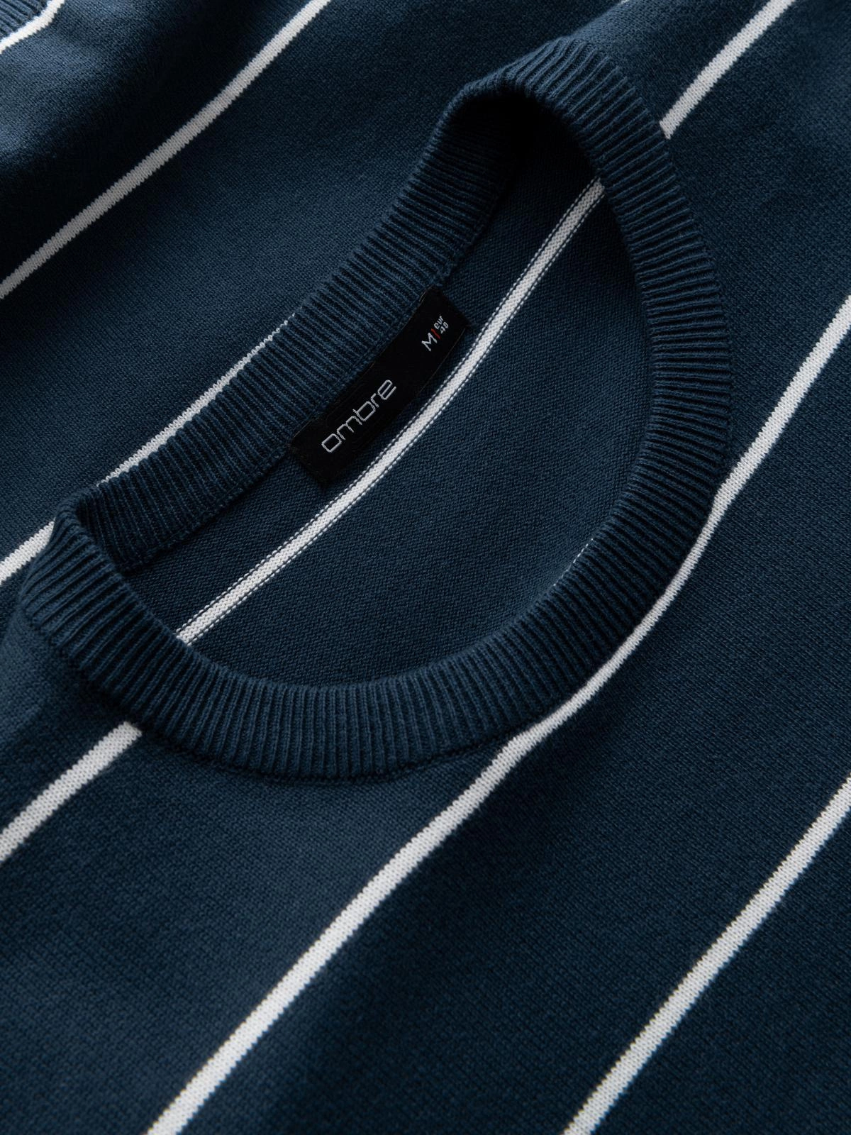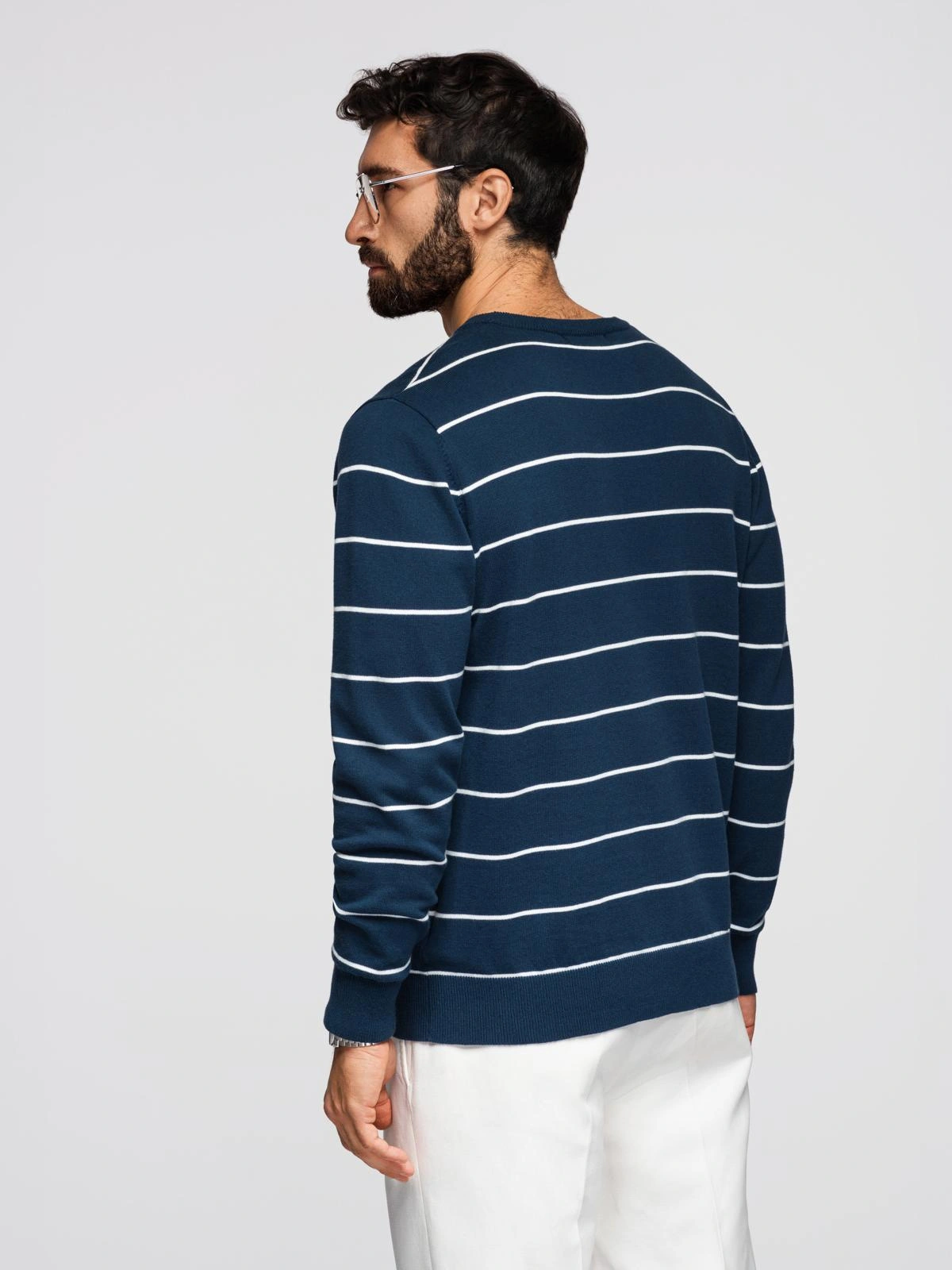 Pulover casual bărbătesc cu dungi orizontale - albastru marin V1 OM-SWSW-0143