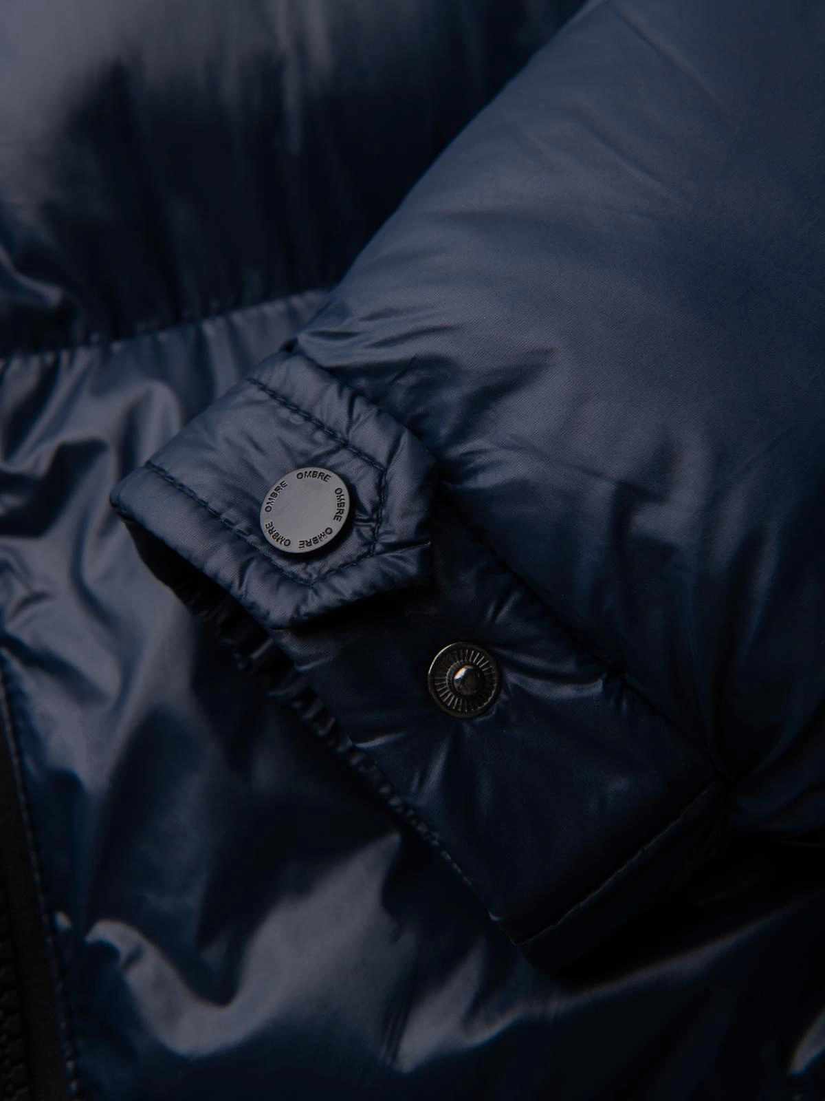 Jachetă puffer călduroasă pentru bărbați cu margini cu nervuri - albastru marin V2 OM-JAHP-0207
