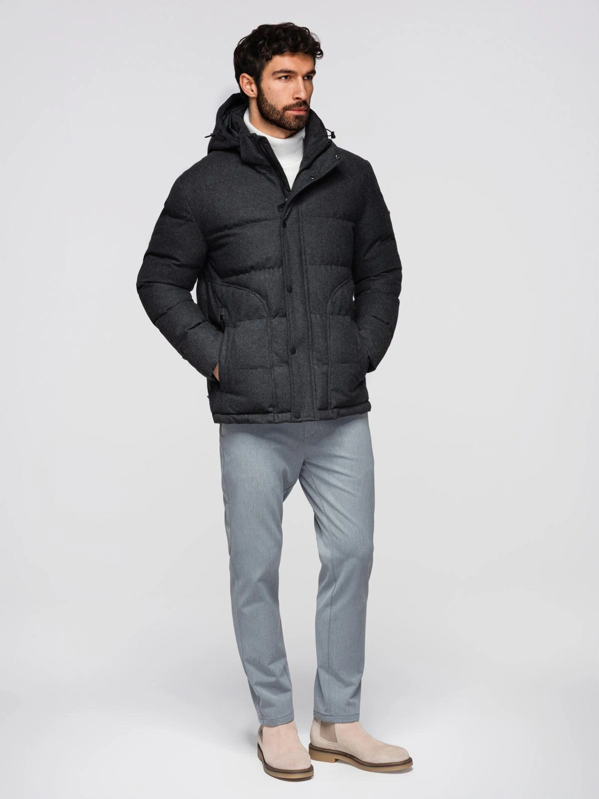 Jacheta casual ușoară din colecția Ombre Quintessence va funcționa deosebit de bine în zilele ploioase. Țesătura întărită tehnic este mai puțin sensibilă la apă și este, de asemenea, ușor de întreținut. Circulația adecvată a aerului este asigurată de căptușeala din plasă. Jacheta poate fi închisă decent la gât - gulerul cu guler ridicat și gluga confortabilă reglabilă oferă protecție suplimentară împotriva vântului
