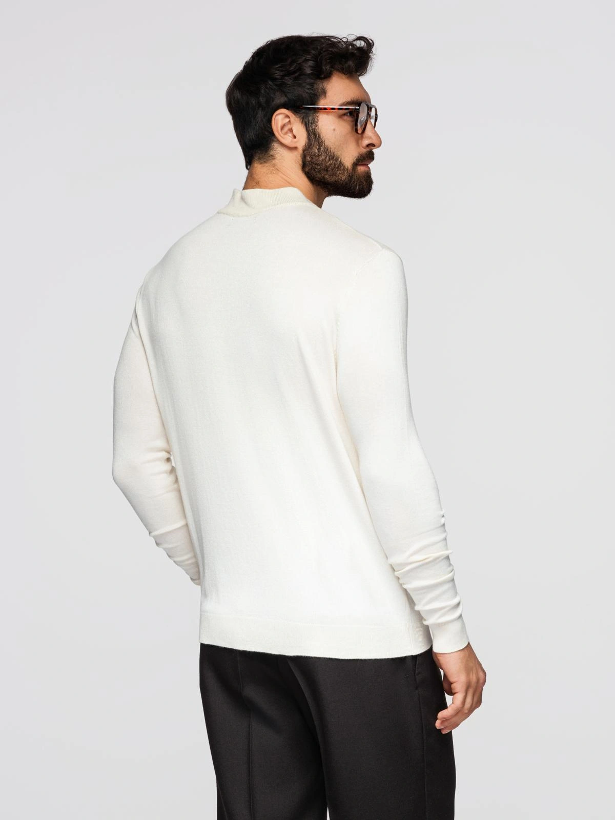 Jumătate de guler înalt tricotat pentru bărbați cu vâscoză - crem V4 OM-SWTN-0100