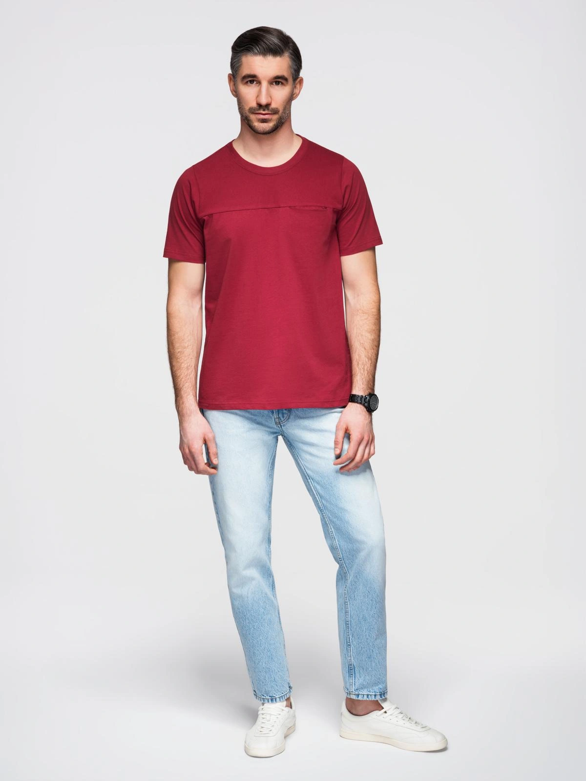 Tricou pentru bărbați LOOSE FIT cu buzunar - roșu V3 OM-TSCT-0171