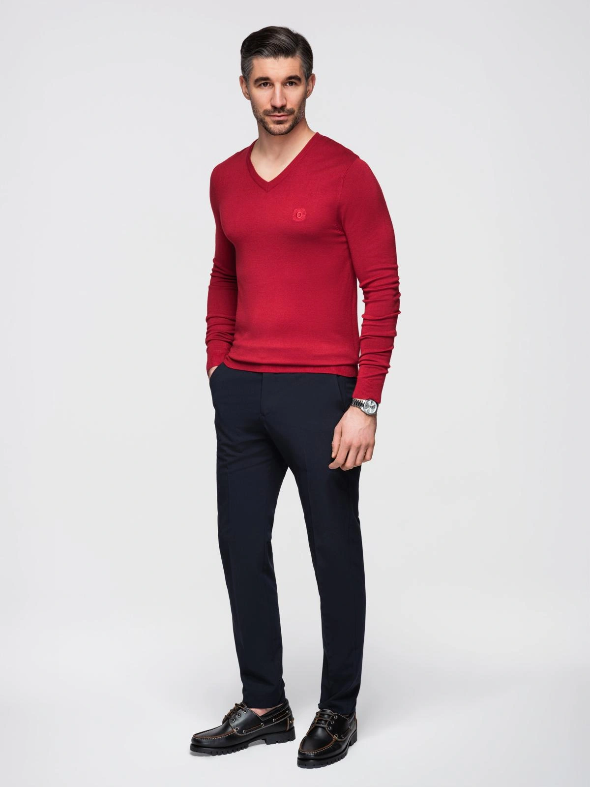 Pulover elegant BASIC cu gât în V, pentru bărbați, din viscoză - roșu V20 OM-SWBS-0107