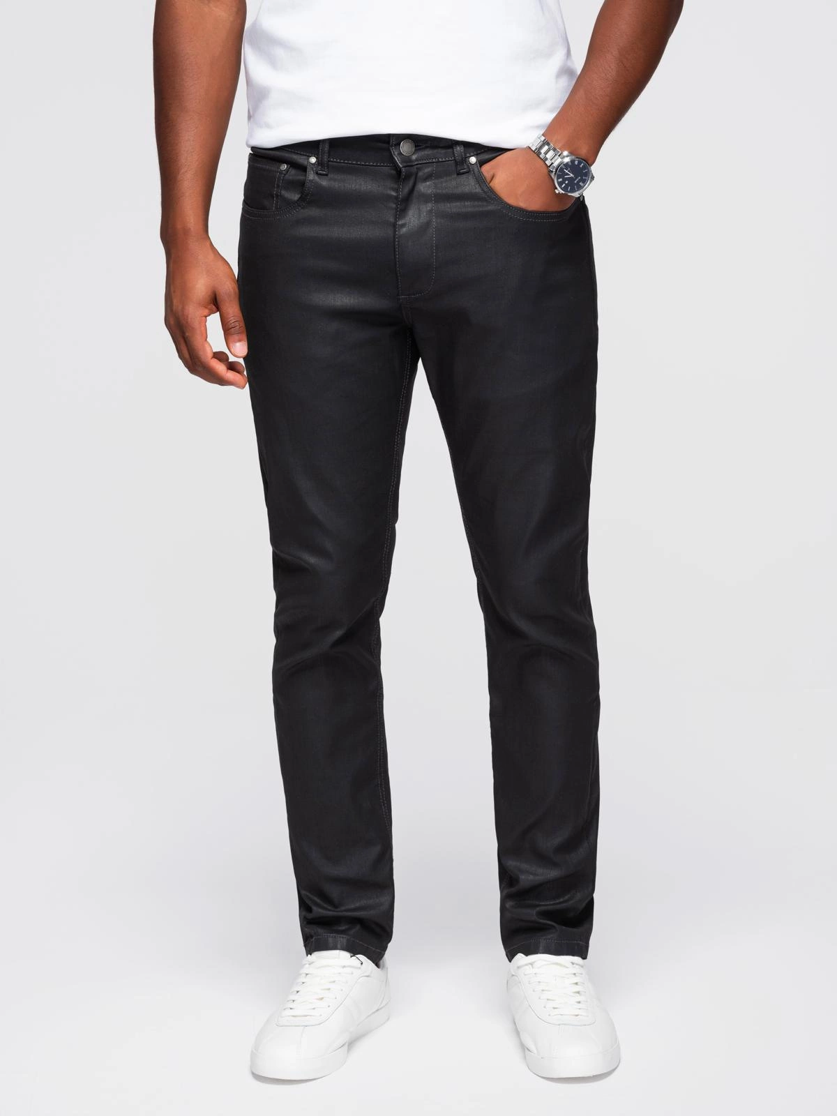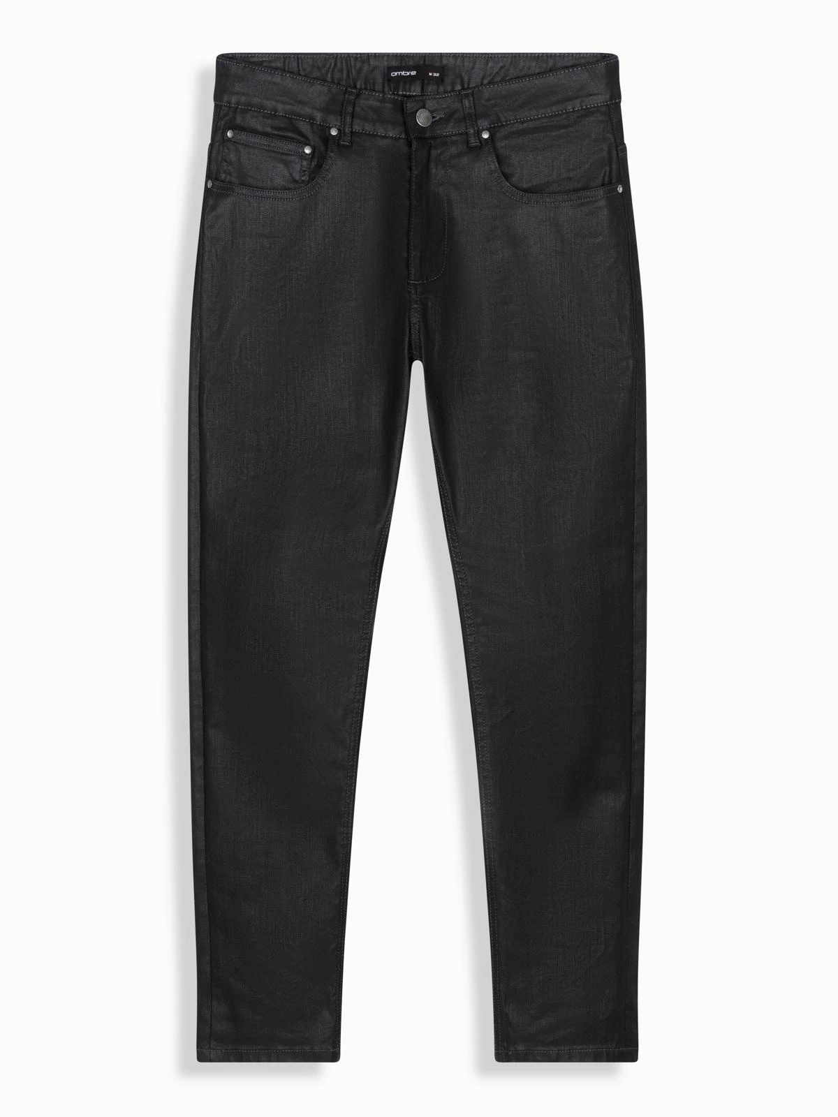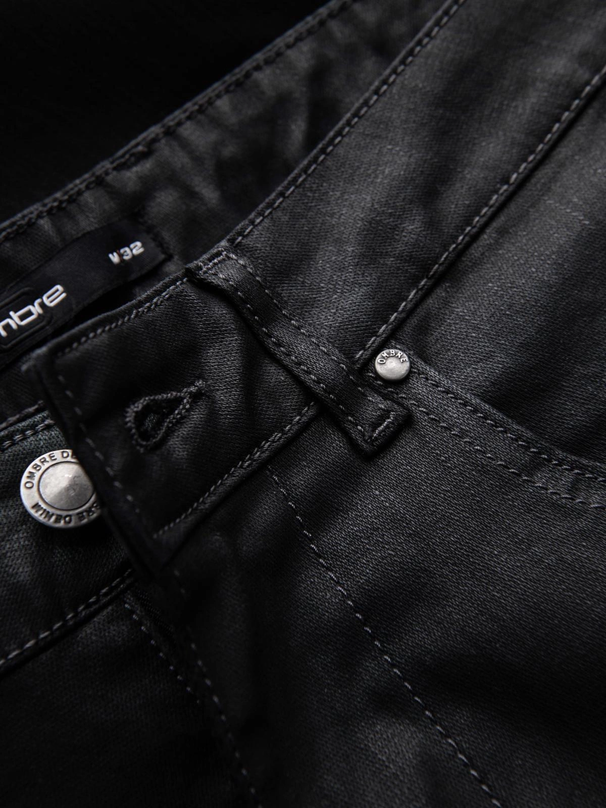 Pantaloni SLIM FIT din denim cerat pentru bărbați - negru V3 OM-PADP-0149