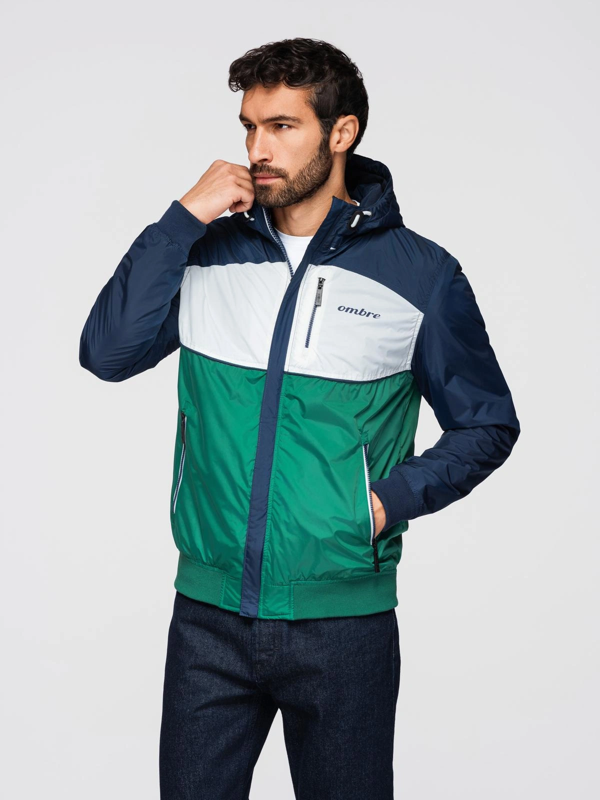 Jachetă sport ușoară colorată pentru bărbați cu fleece - verde și albastru marin V20 OM-JANP-0194