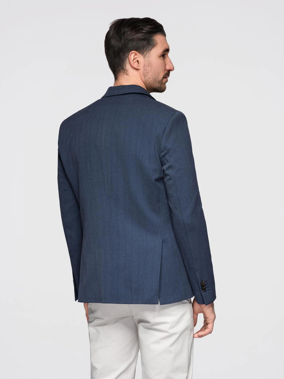 Jachetă elegantă SLIM FIT pentru bărbați cu raion - albastru închis V3 OM-BLZB-0135