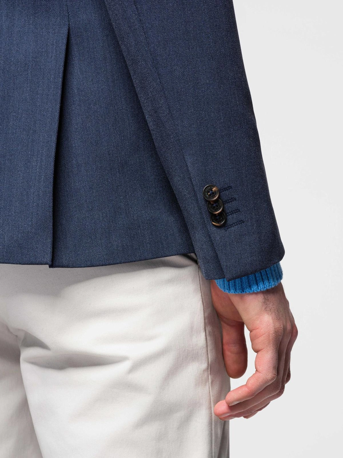 Clasicele nu se demodează niciodată, iar acest sacou bărbătesc din colecția Ombre Quintessence este un prim exemplu. Ținuta croită este potrivită în special pentru contexte formale. Finisajul rafinat al țesăturii exterioare se datorează raionului fin din compoziție. Detaliile subtile, cum ar fi nasturii gravați în marmură și căptușeala adaugă o notă de clasă jachetei.