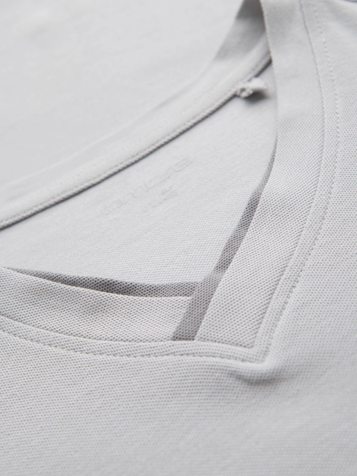 Tricou pentru bărbați cu inserții contrastante și decolteu în V - gri deschis V4 OM-TSCT-0198