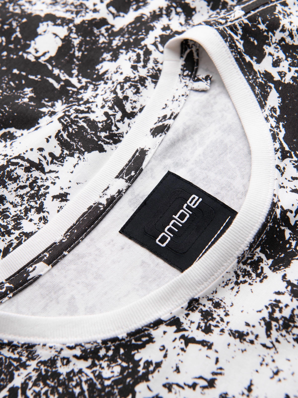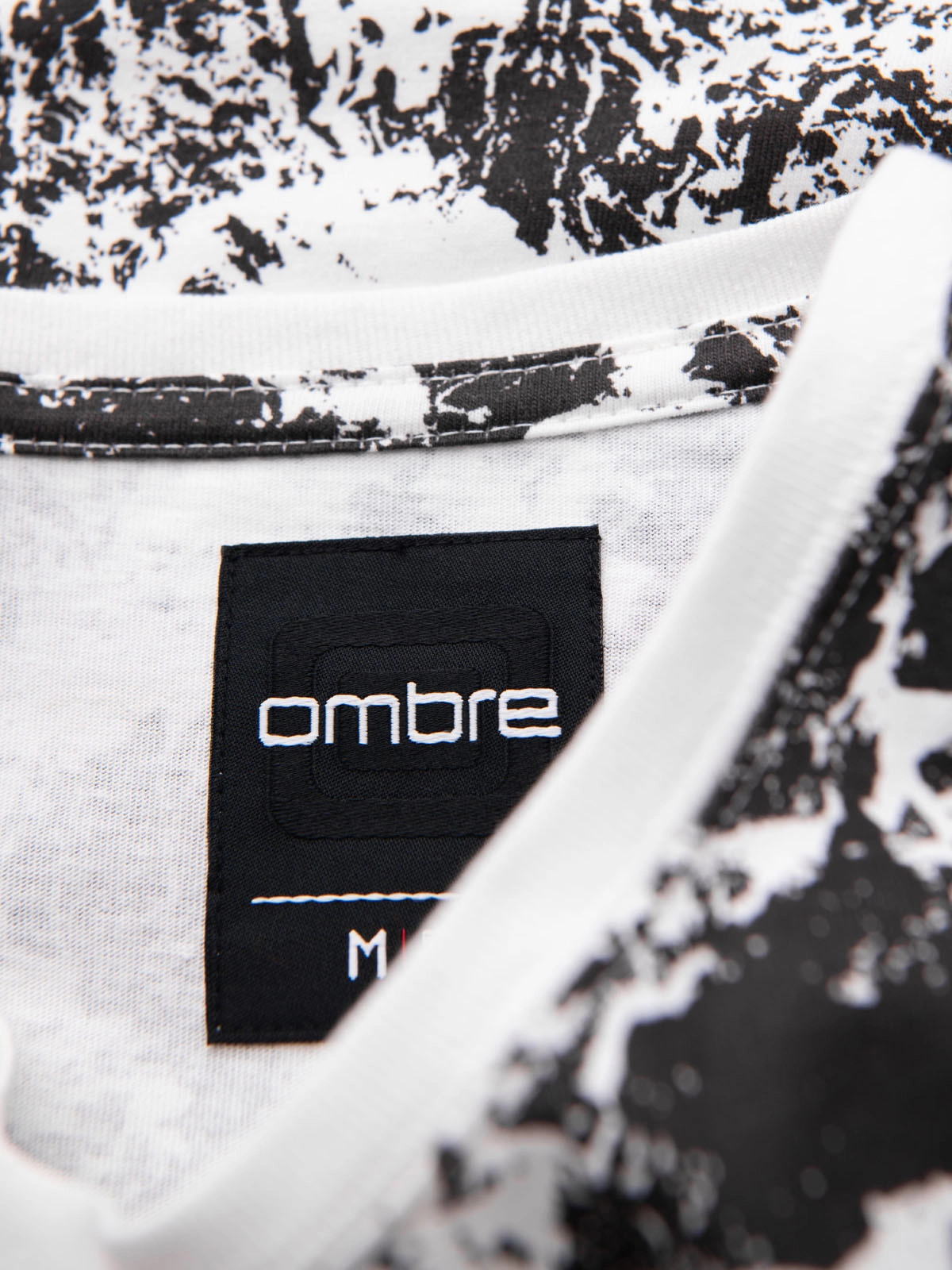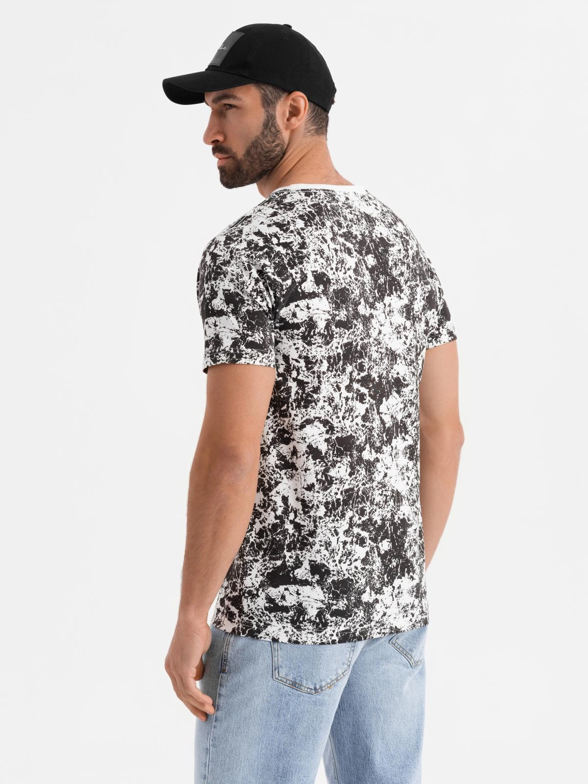 Tricou cu mânecă scurtă din bumbac cu model pentru bărbați - alb și negru V2 OM-TSFP-0223