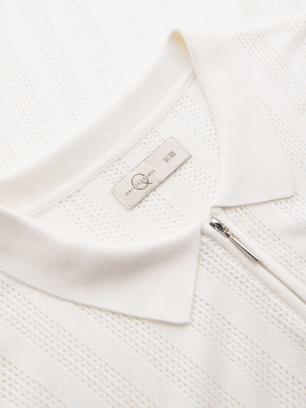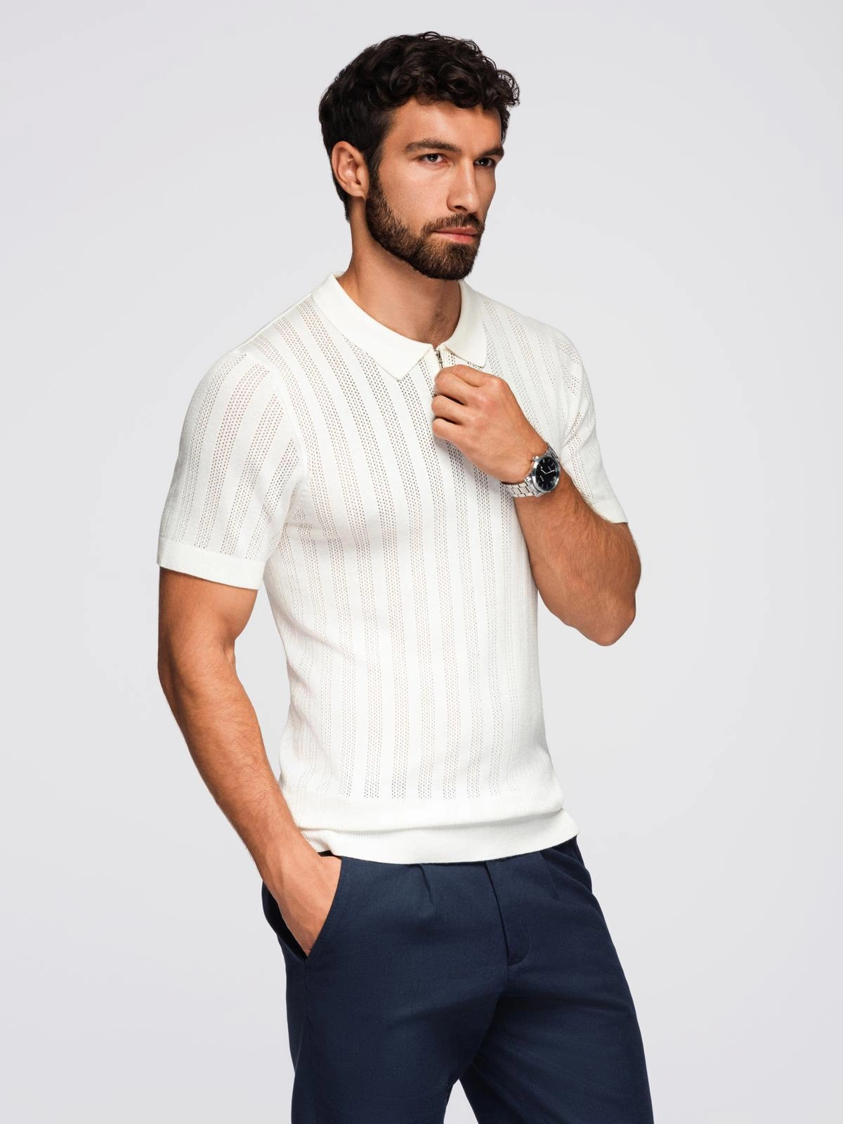 Tricou polo pentru bărbați cu fermoar la decolteu - alb V1 OM-POSS-0158