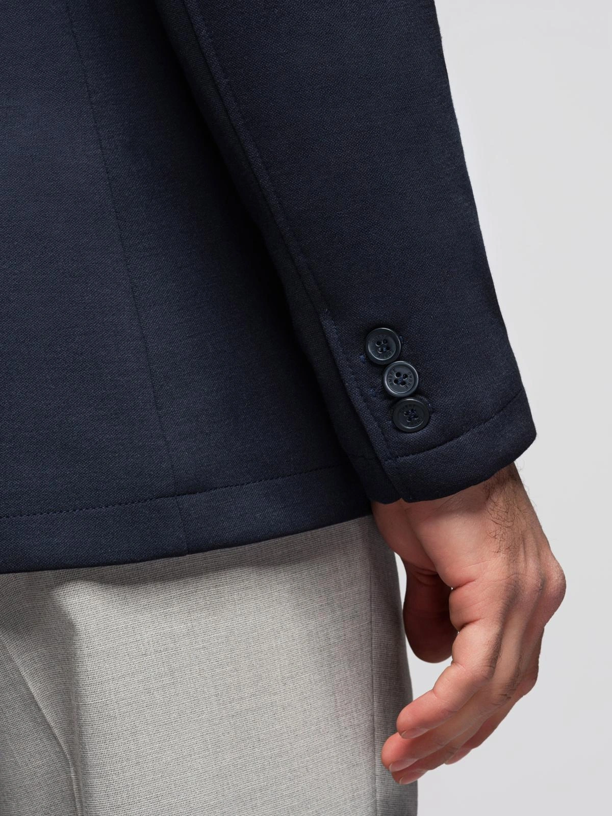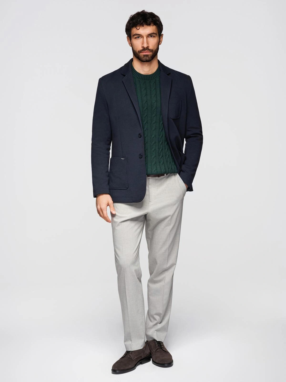 Jachetă SLIM pentru bărbați din tricot subtil structurat - albastru marin V3 OM-BLZB-0101