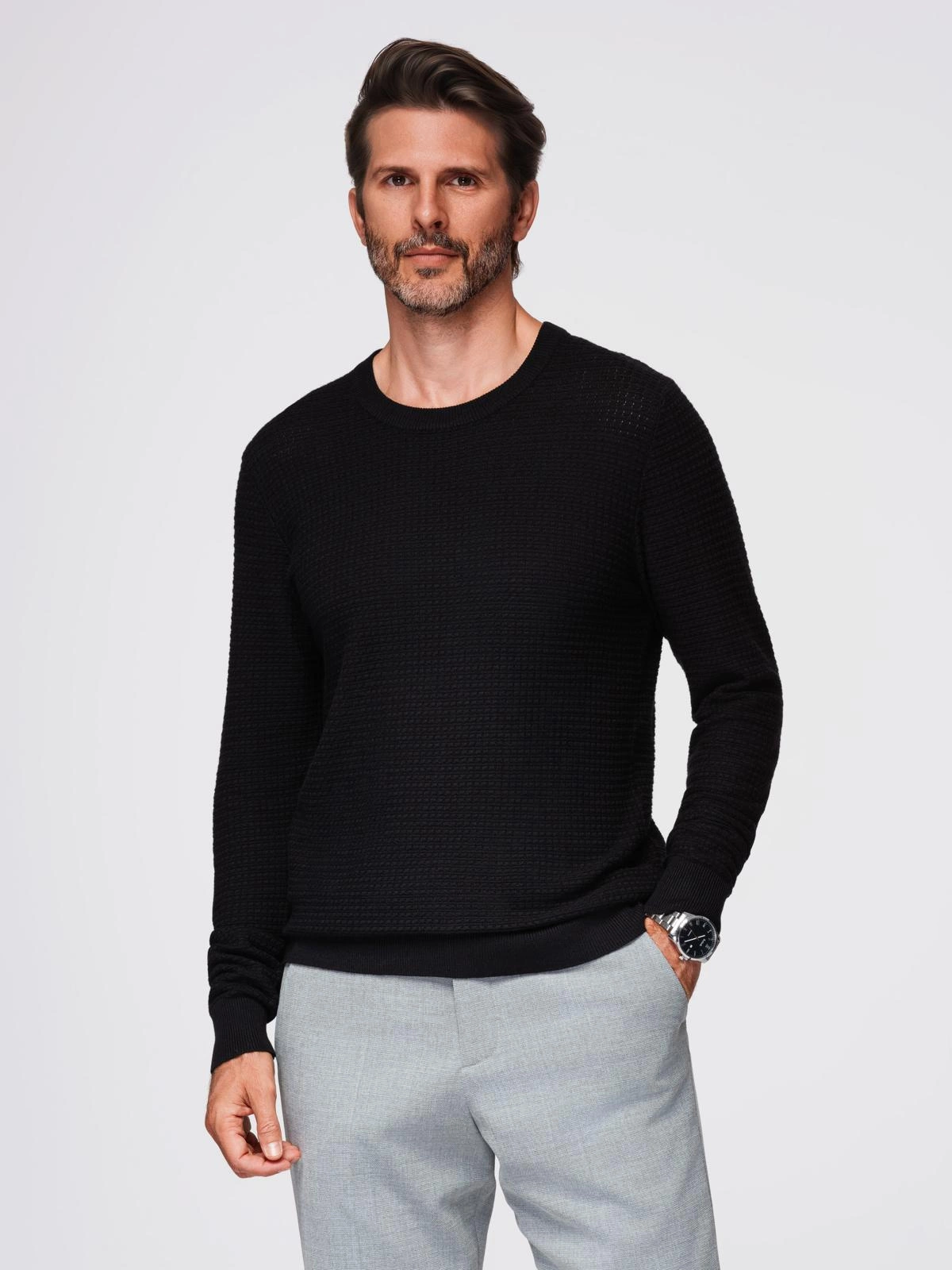 Pulover cu gât rotund pentru bărbați Structured - negru V3 OM-SWSW-0181