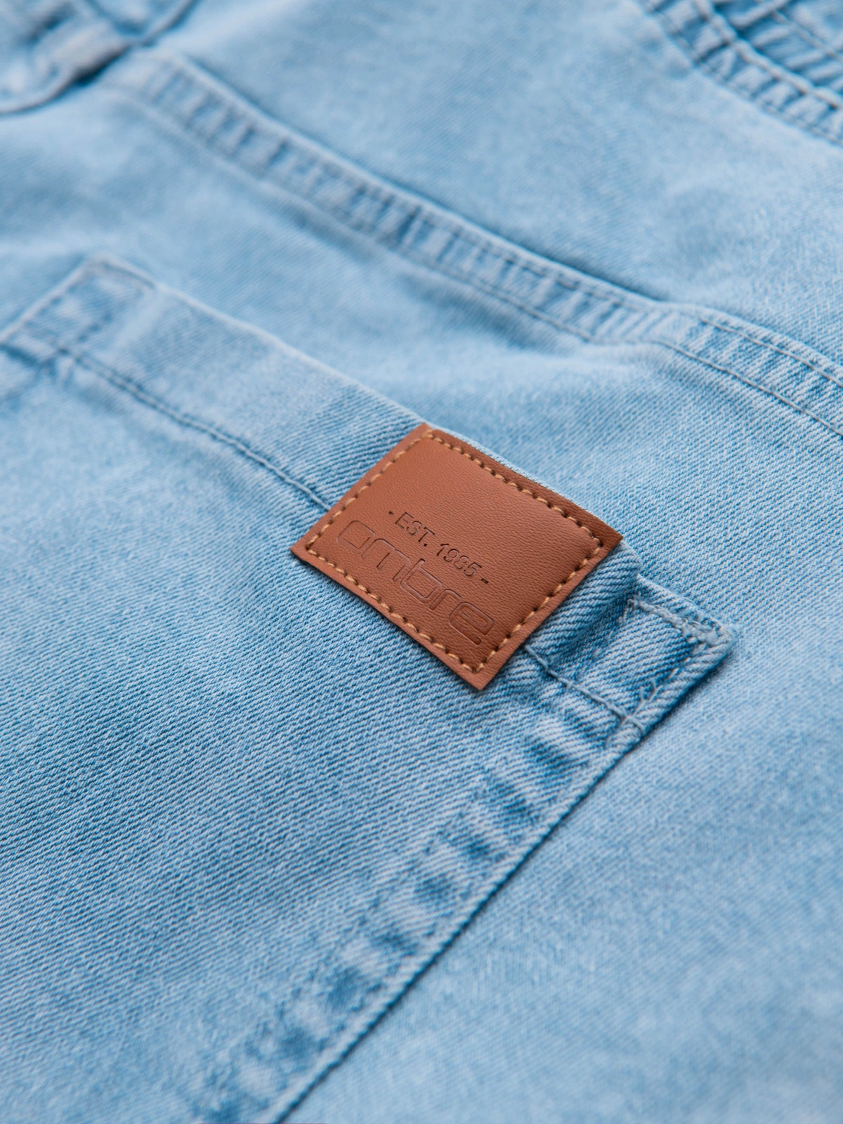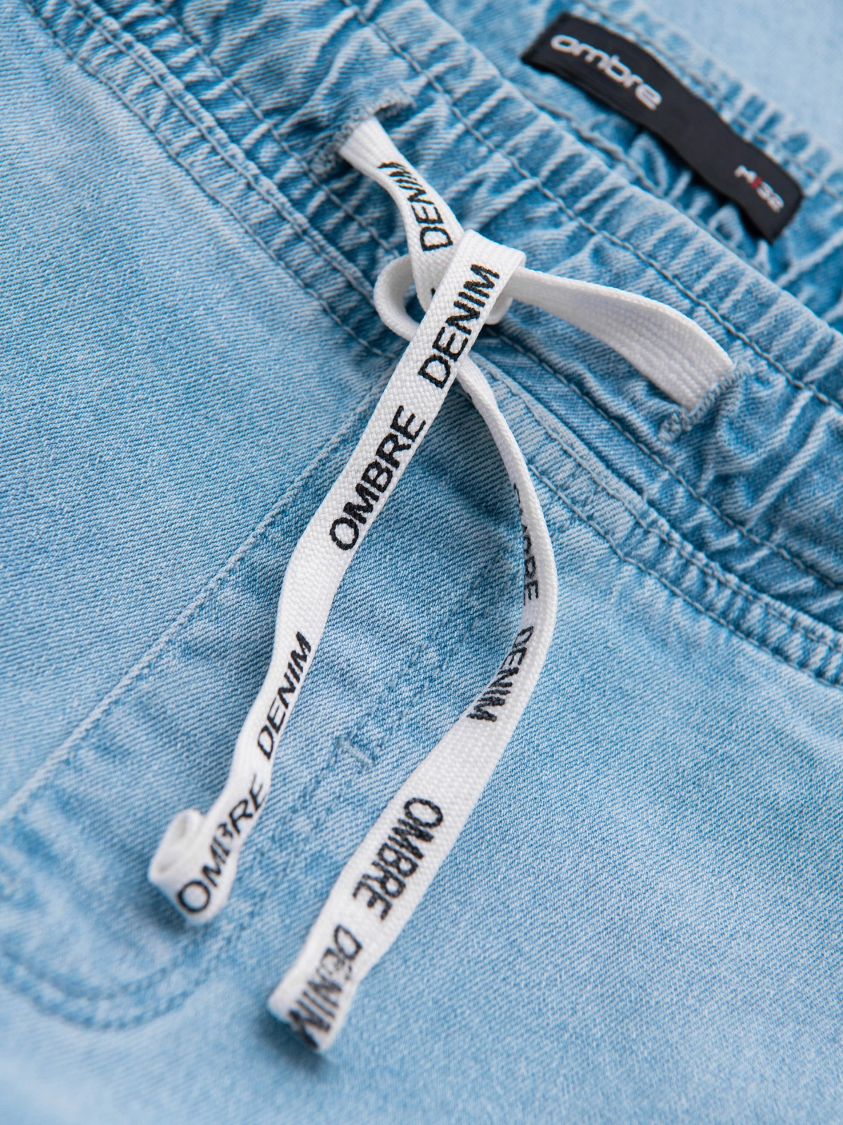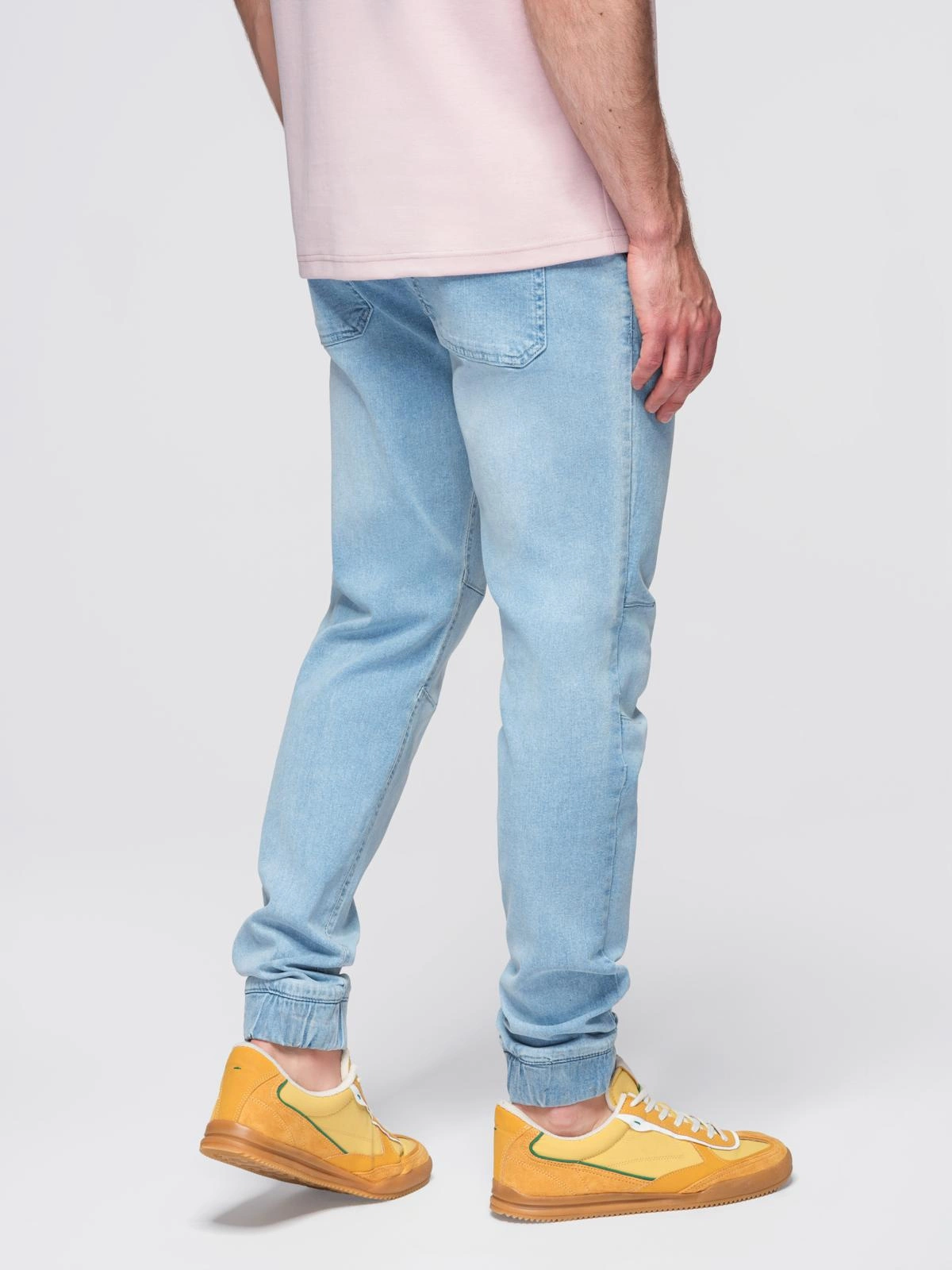 Pantaloni JOGGERS din denim cu efect de spălare pentru bărbați - albastru deschis V1 OM-PADJ-0267