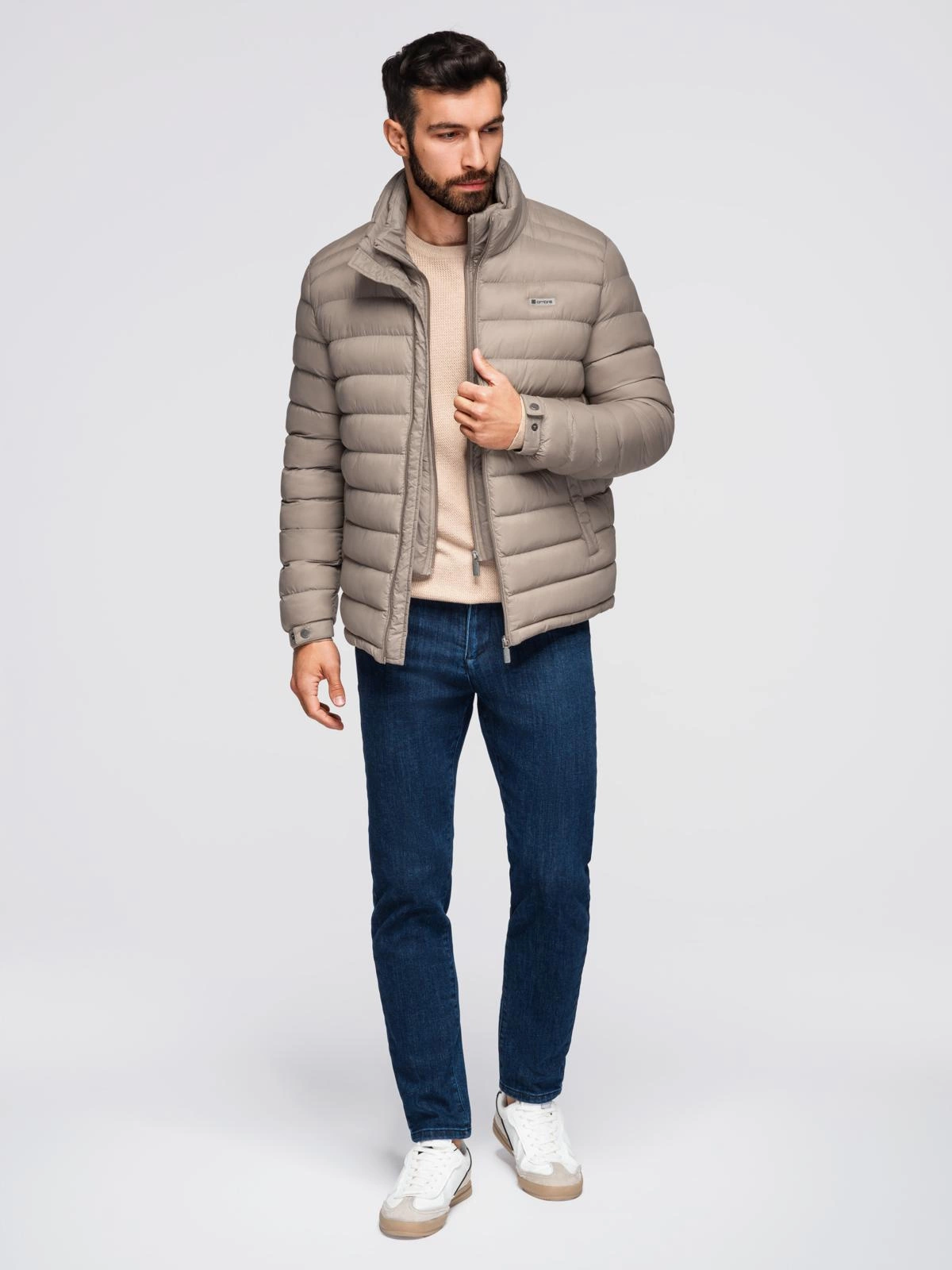 Jachetă matlasată pentru bărbați cu două închizători - bej închis V4 OM-JALP-0231