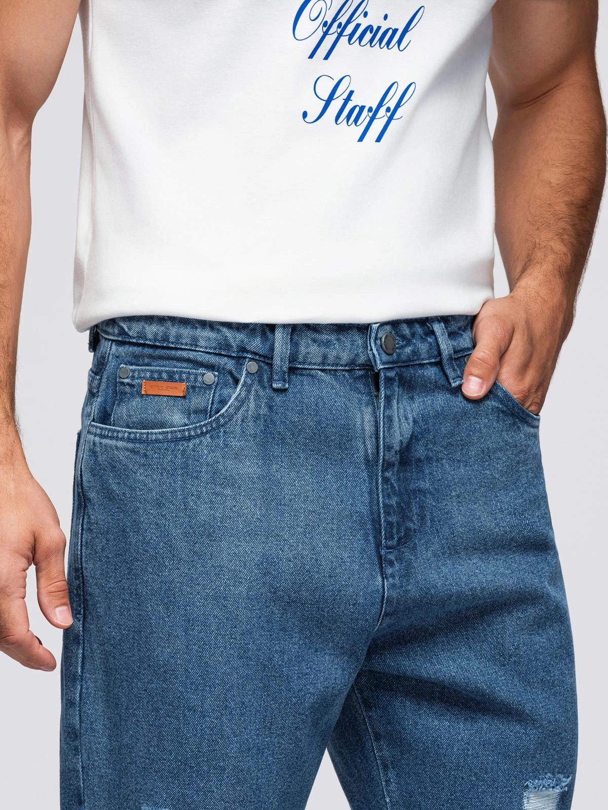 Pantaloni din denim pentru bărbați CARROT FIT cu margini frecate - albastru V2 OM-PADP-0250