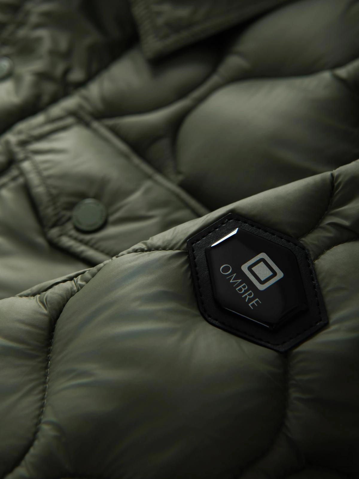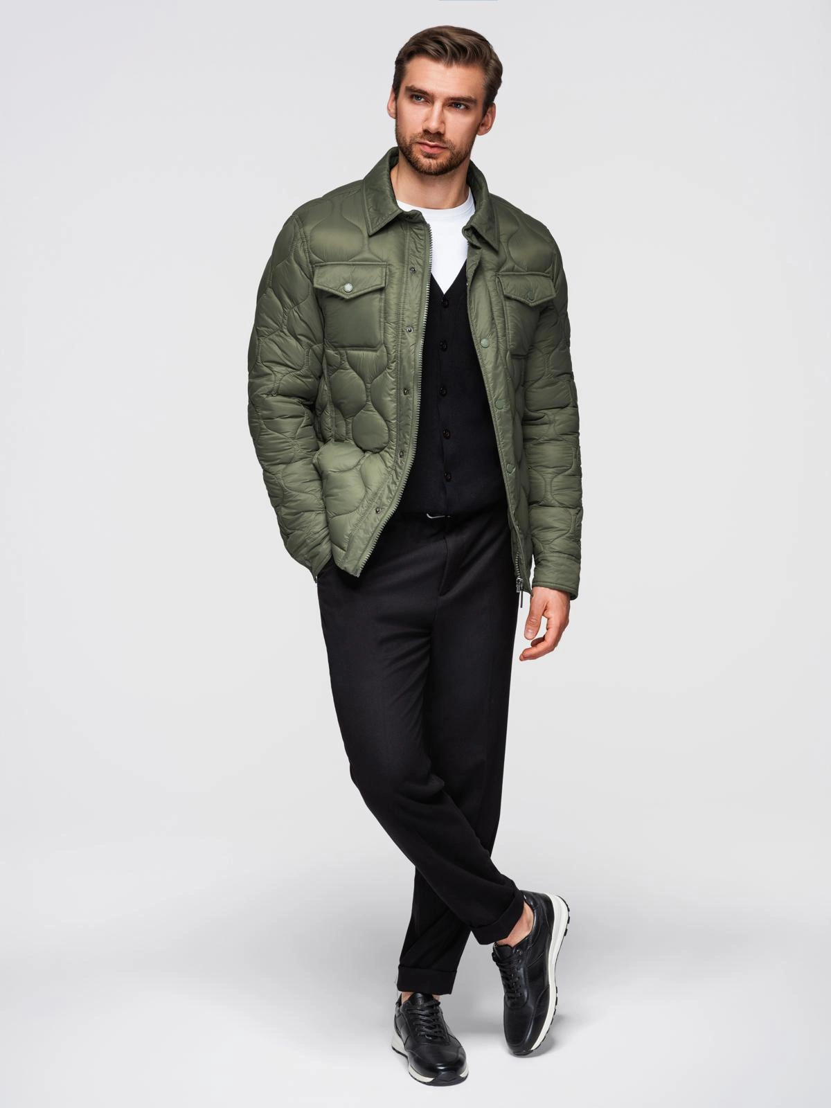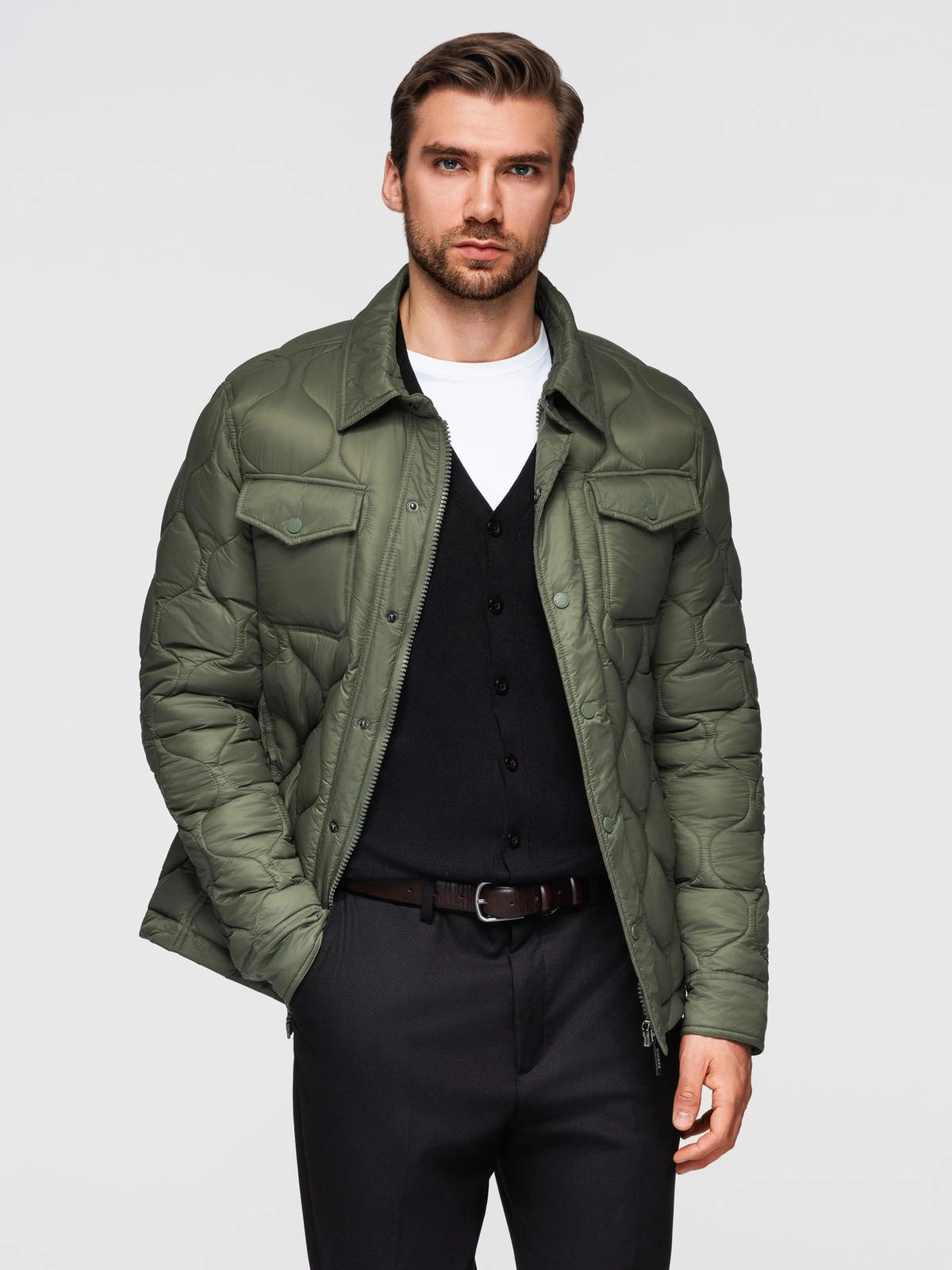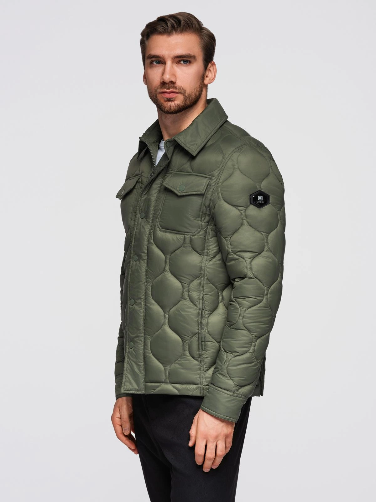 Jachetă bărbătească matlasată în croială cămașă - olive V2 OM-JALP-0215