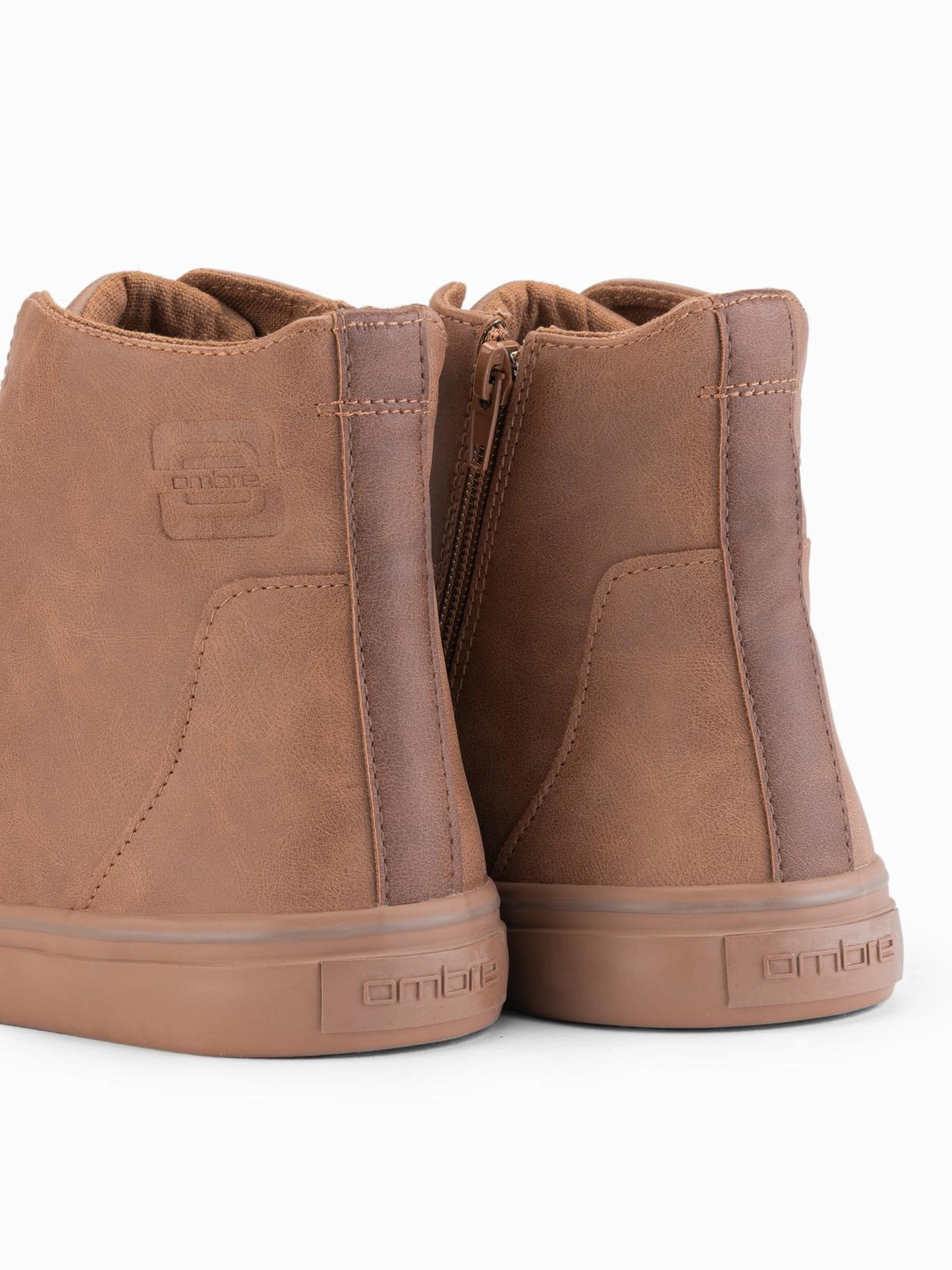 Adidași bărbătești cu talpă înaltă, cu textură mată și logo în relief - maro deschis V3 OM-FOTH-0185