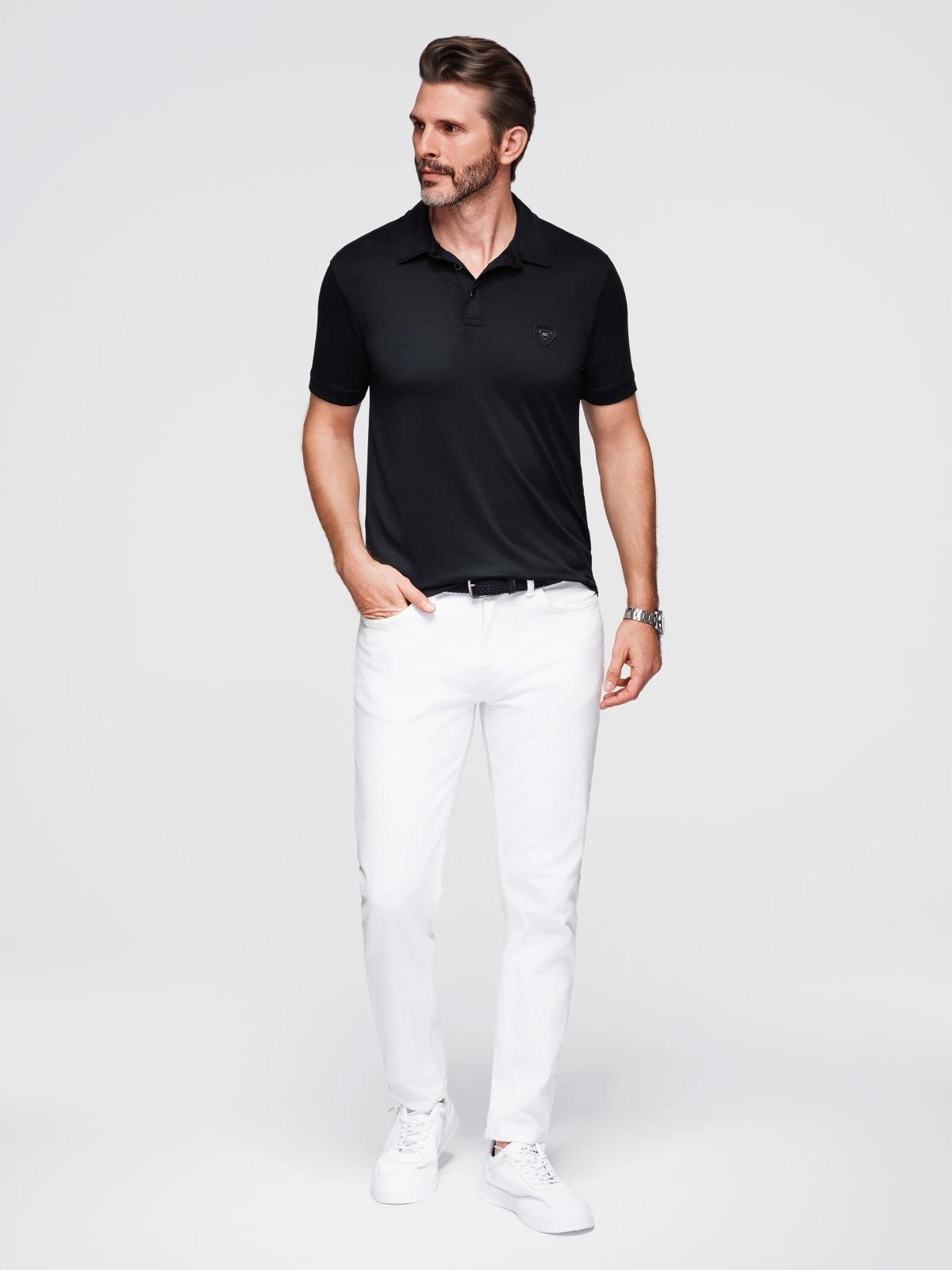 Tricou polo elegant pentru bărbați din material elastic - negru V1 OM-POSS-0150