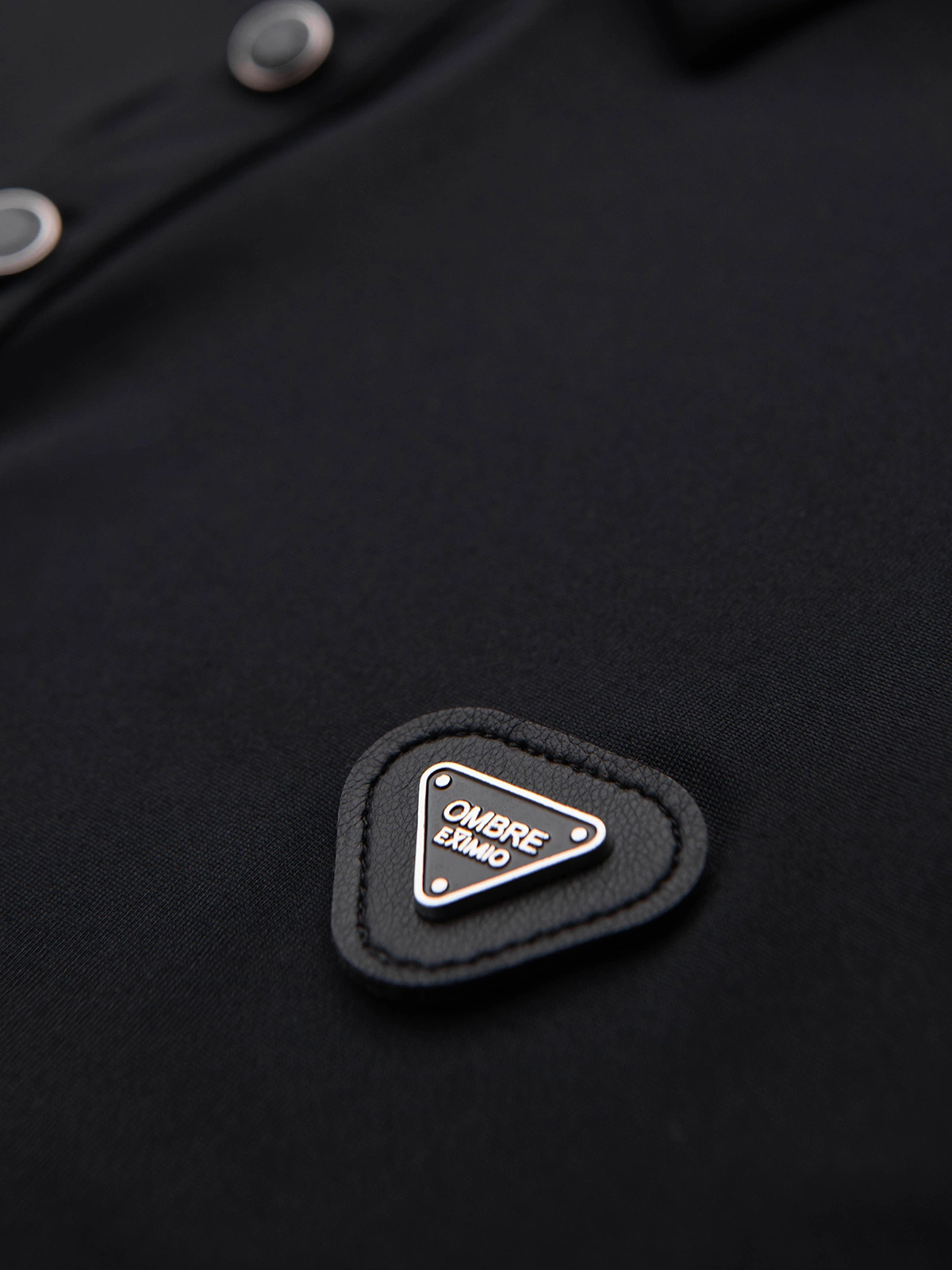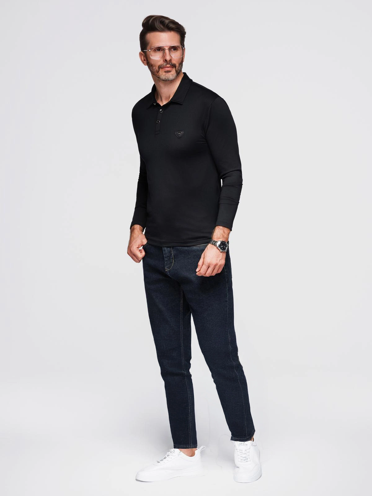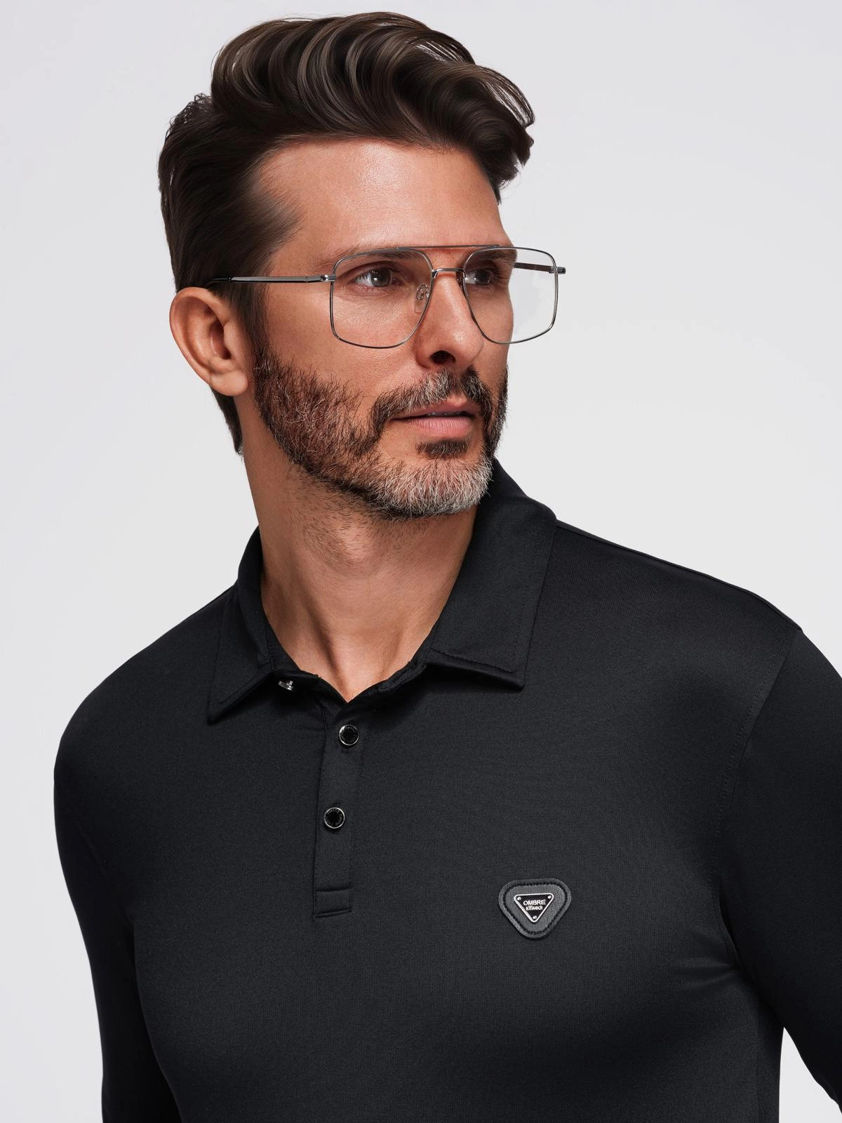 Tricou polo cu mânecă lungă și nasturi eleganți de marcă - negru V1 OM-POLS-0139